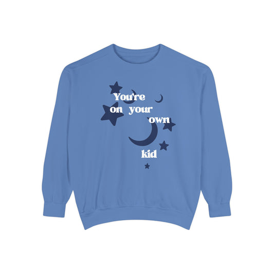 "You're On Your Own Kid" Comfort Colors Crewneck Sweatshirt — Moody Night Stars Graphic
