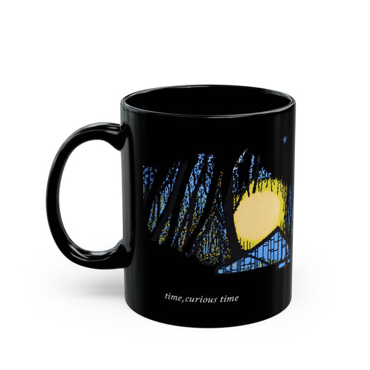 Curious Time Black Mug — Night Forest Moonlight Design (11oz, 15oz)