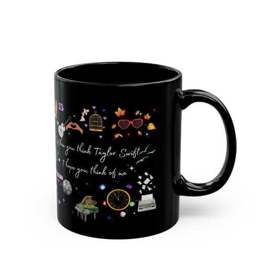 I hope you think of me Black Mug - 11oz & 15oz, Perfect Gift for Swifties, Music Lovers, Birthdays, Coffee Lovers, Special Occasions