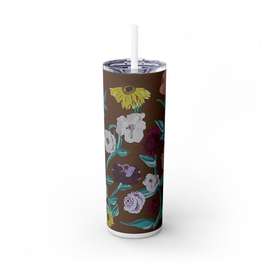 Surprise Song Piano Flowers - Vinyl Case Inspired - Skinny Tumbler with Straw, 20oz