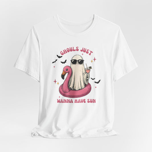 Ghouls Just Wanna Have Sun Tee, Fun Summer T-Shirt, Halloween Shirt, Ghost Apparel, Beach Party Top, Casual Unisex Tee