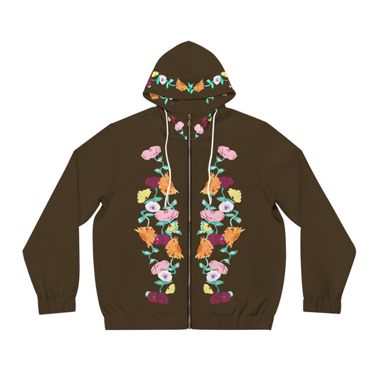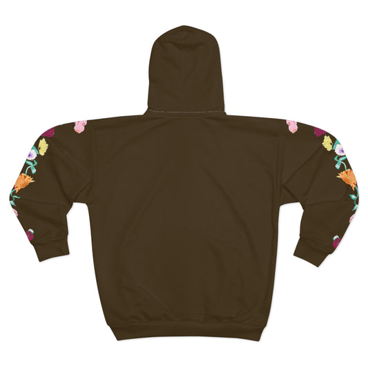 Acoustic Piano Unisex Full‑Zip Hoodie — Brown Garden Motif