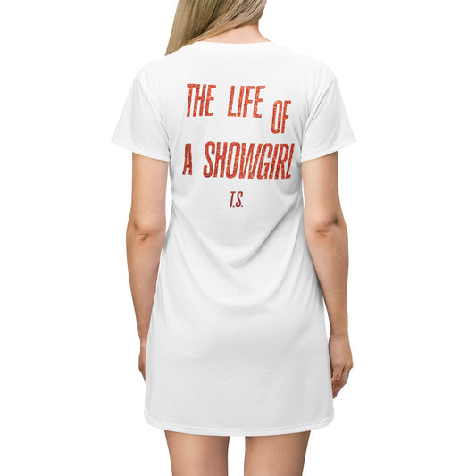 Front and Back Printed Showgirl-Inspired T-Shirt Dress for Bold Fashionistas, Performance Outfit, Casual Wear, Unique Gift for Performers, Stage Costume