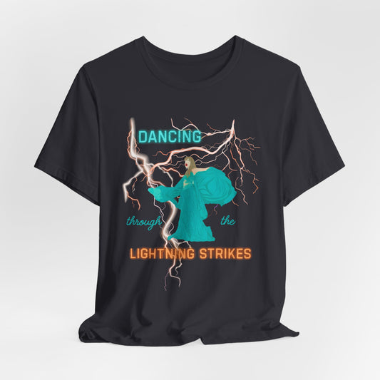 Dancing Through the Lightning Strikes Tee, Unisex Graphic T-Shirt for Music Lovers, Concert Attire, Festival Wear, Unique Gift
