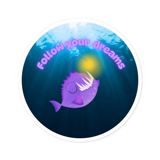 Inspirational Anglerfish Sticker - "Follow Your Dreams" - Waterproof Round Décor for Laptops & More