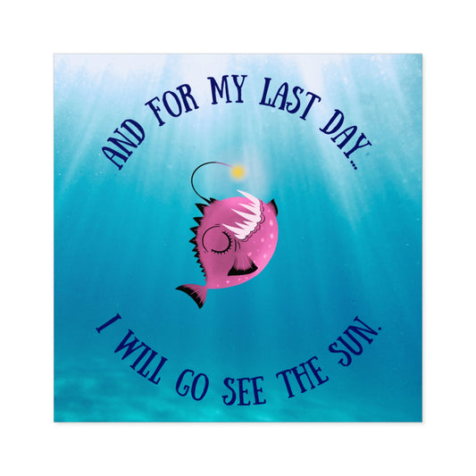 Inspirational Angler Fish Square Stickers - "And for My Last Day, I Will Go See the Sun" - Indoor/Outdoor Décor