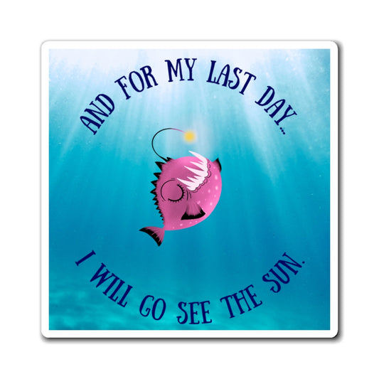 Inspirational Angler Fish Magnet - "And For My Last Day... I Will Go See The Sun"