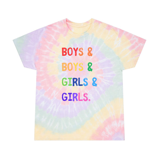 boys & boys & girls & girls - Spiral Tie-Dye Pride Tee - Unisex Summer Shirt, LGBTQ+ Pride Apparel, Fun Festival Tee, Casual Wear