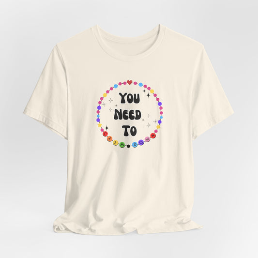 You Need To Calm Down - Shade Never Made Anybody Less Gay - Friendship Bracelet - Front/Back Unisex Jersey Short Sleeve Tee, Casual Graphic Tee, Motivational Shirt, Gift for Everyone, Affirmation Apparel
