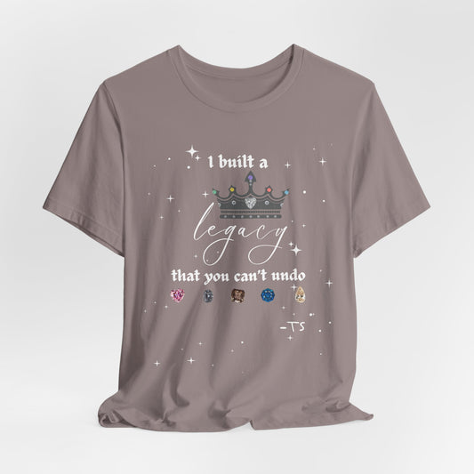 I built a Legacy that you can't undo - Swiftie Albums Crown Tee - Inspirational Unisex Jersey Tee, Motivational Gift, Casual Wear, Birthday Celebration, Confidence Booster