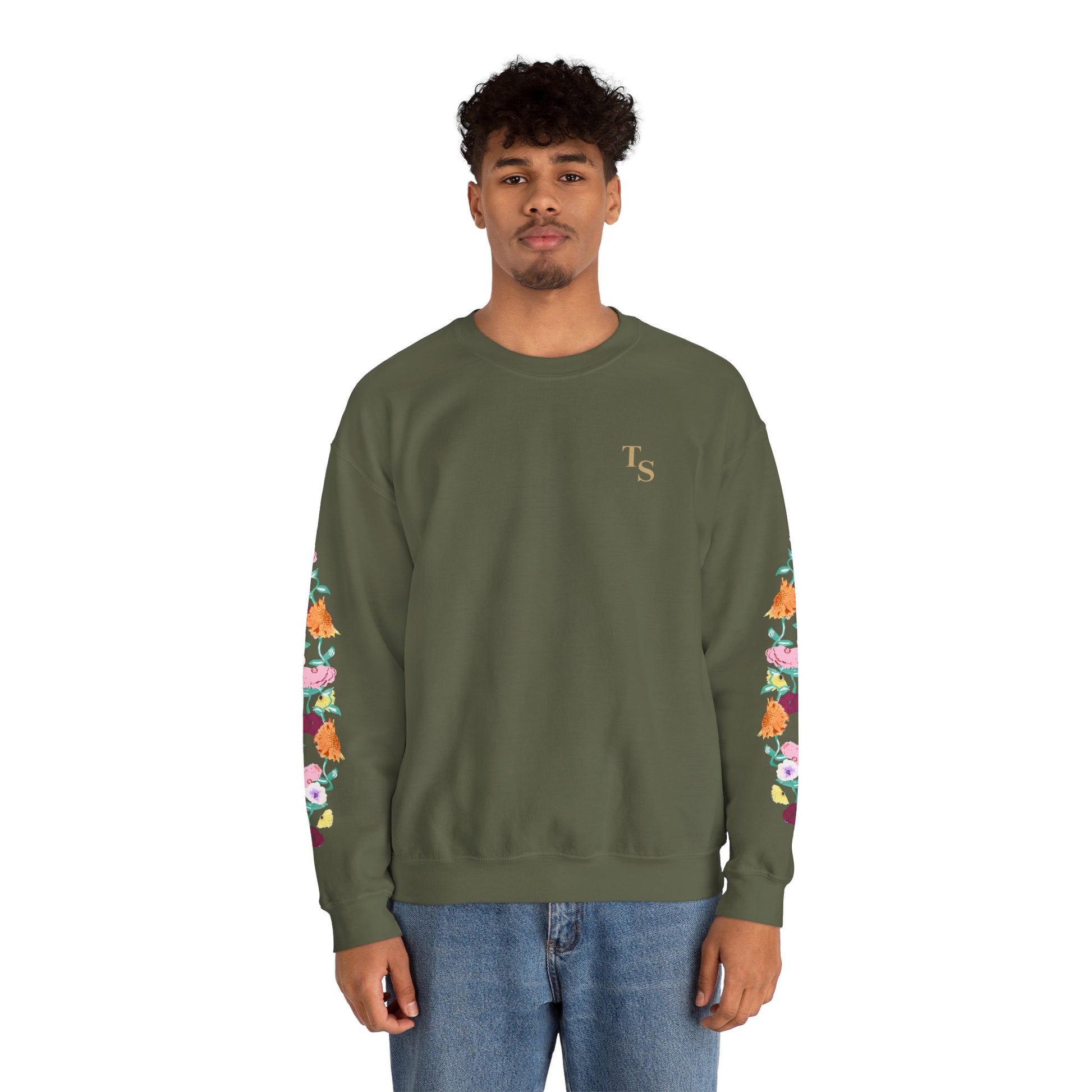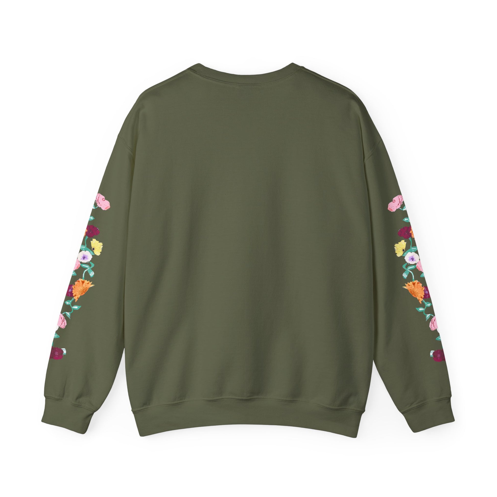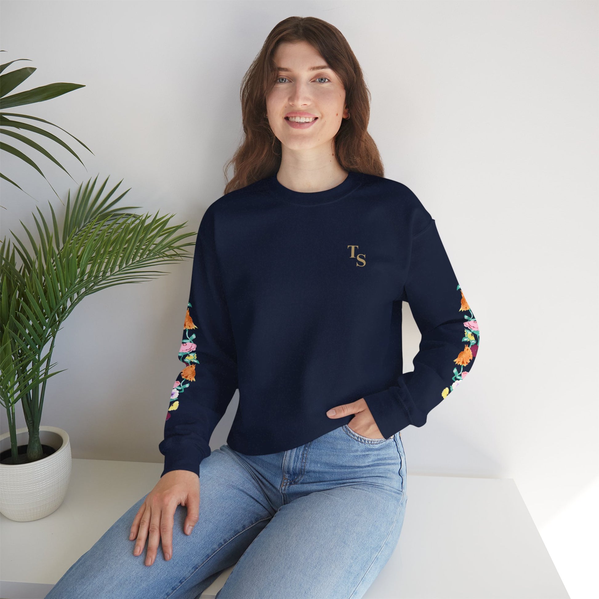 A soft, reliably warm crewneck that blends everyday comfort with a quiet, cultivated vibe. The clean black base keeps the look pared-down while the floral design runs along both sleeves, adding a handcrafted, botanical touch that feels personal rather than loud. A small, tasteful monogram on the left chest balances the sleeve detail, so the sweatshirt reads thoughtful and layered — like a favorite hoodie elevated for coffee shops, long walks, or late-night study sessions. Breathable yet substantial, it settles in easily with jeans or lounge pants and holds its shape through many wears thanks to reinforced seams and a ribbed collar.