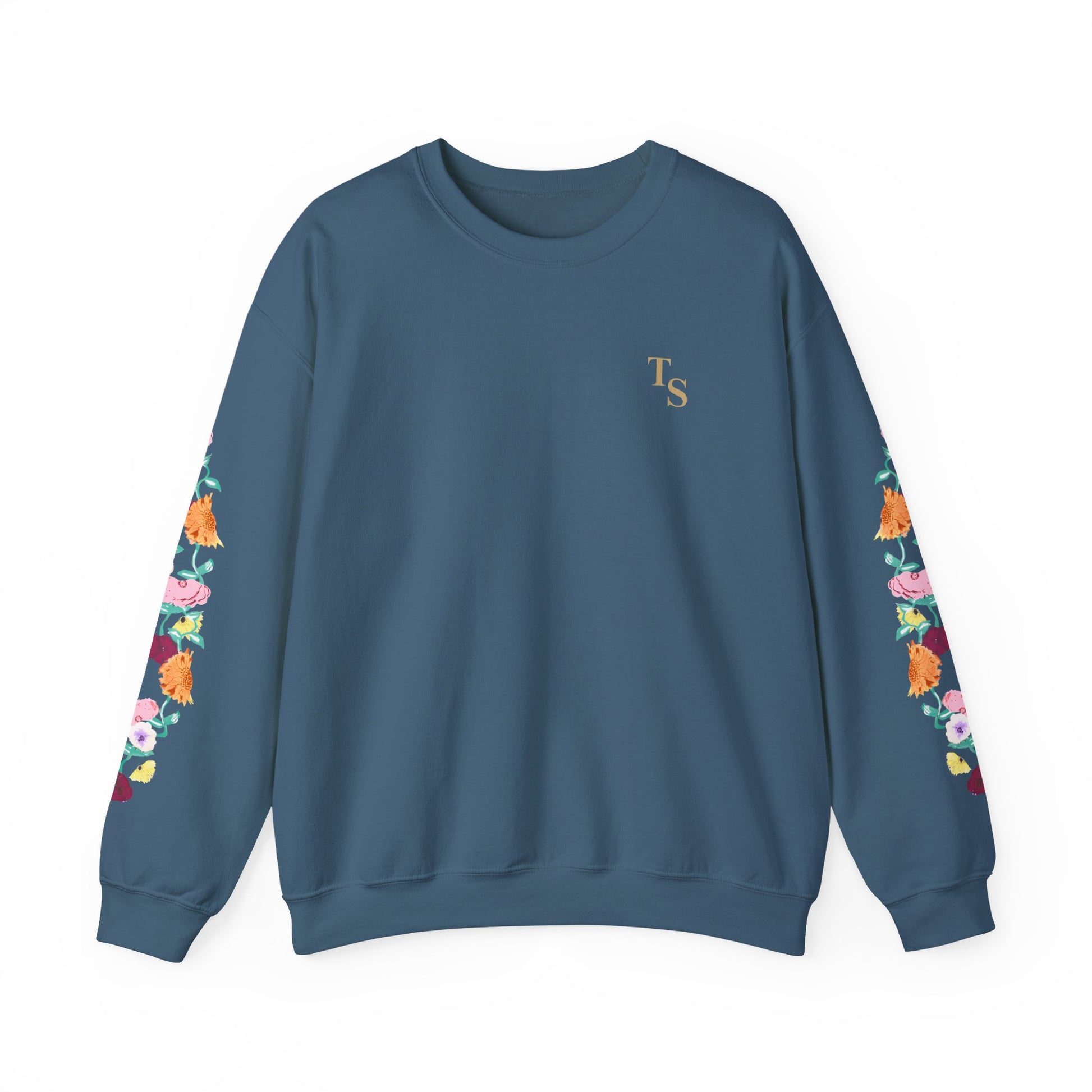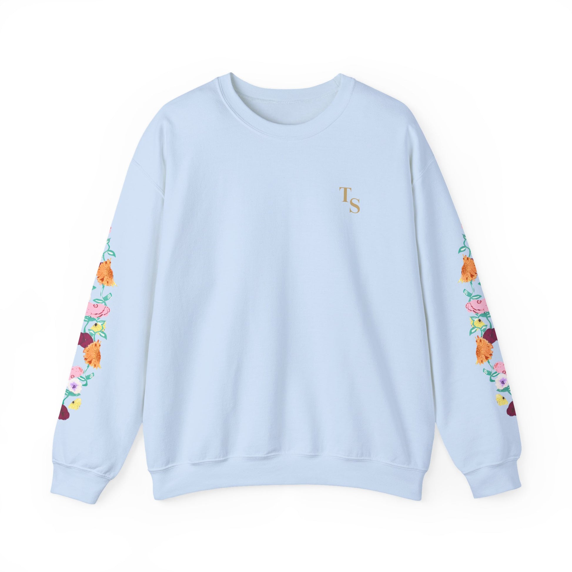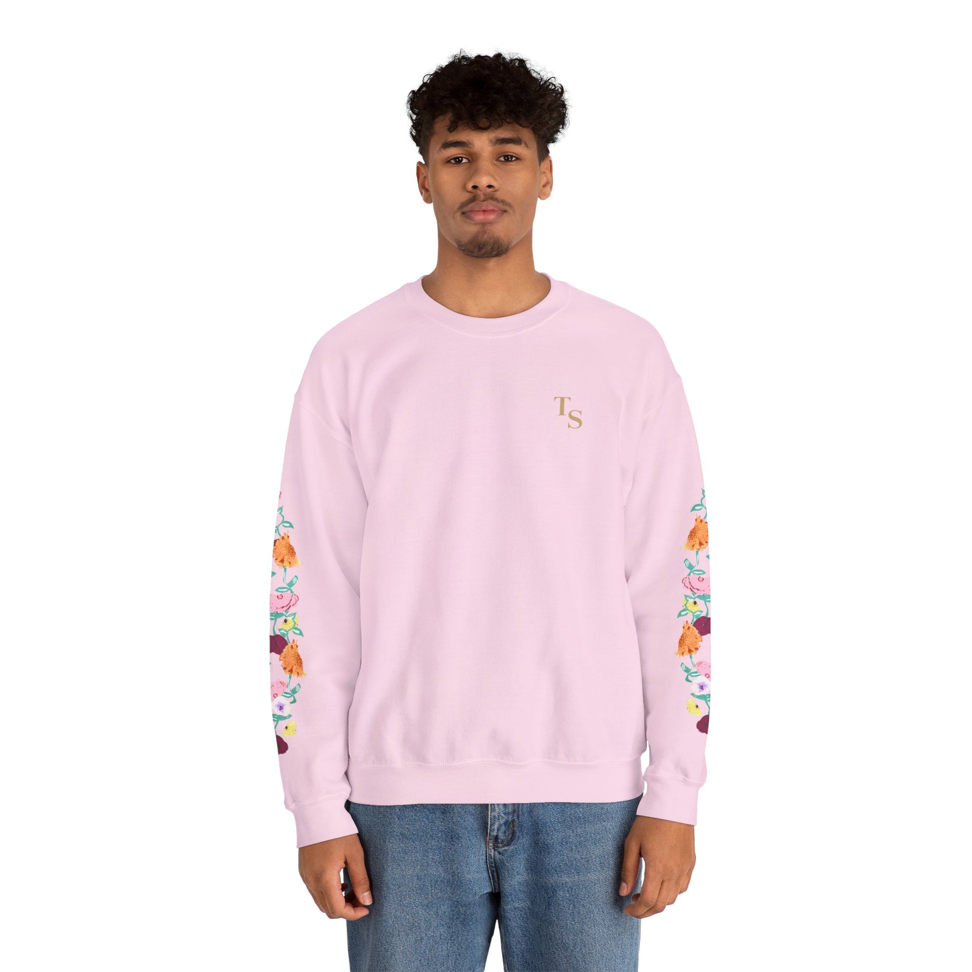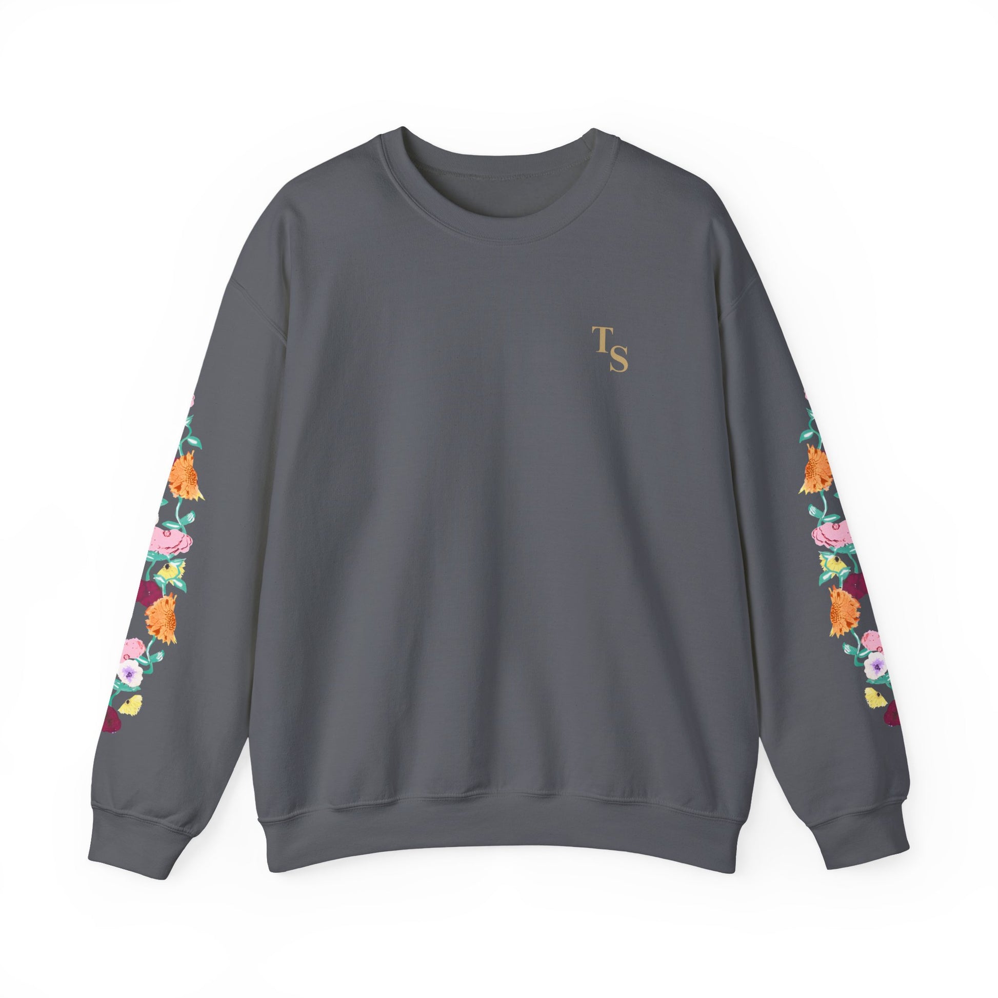 A soft, reliably warm crewneck that blends everyday comfort with a quiet, cultivated vibe. The clean black base keeps the look pared-down while the floral design runs along both sleeves, adding a handcrafted, botanical touch that feels personal rather than loud. A small, tasteful monogram on the left chest balances the sleeve detail, so the sweatshirt reads thoughtful and layered — like a favorite hoodie elevated for coffee shops, long walks, or late-night study sessions. Breathable yet substantial, it settles in easily with jeans or lounge pants and holds its shape through many wears thanks to reinforced seams and a ribbed collar.