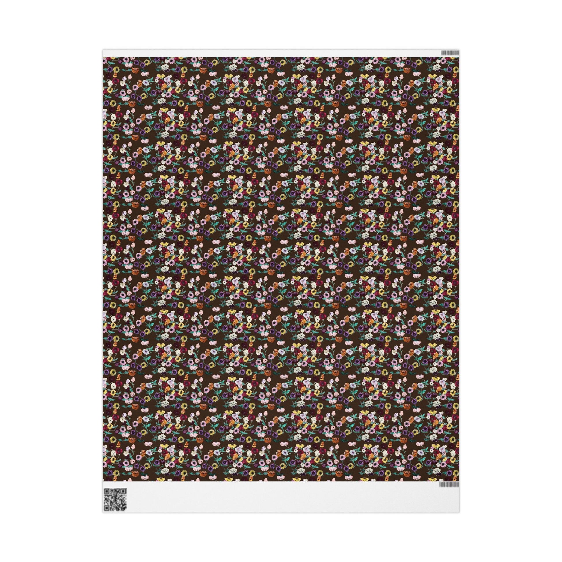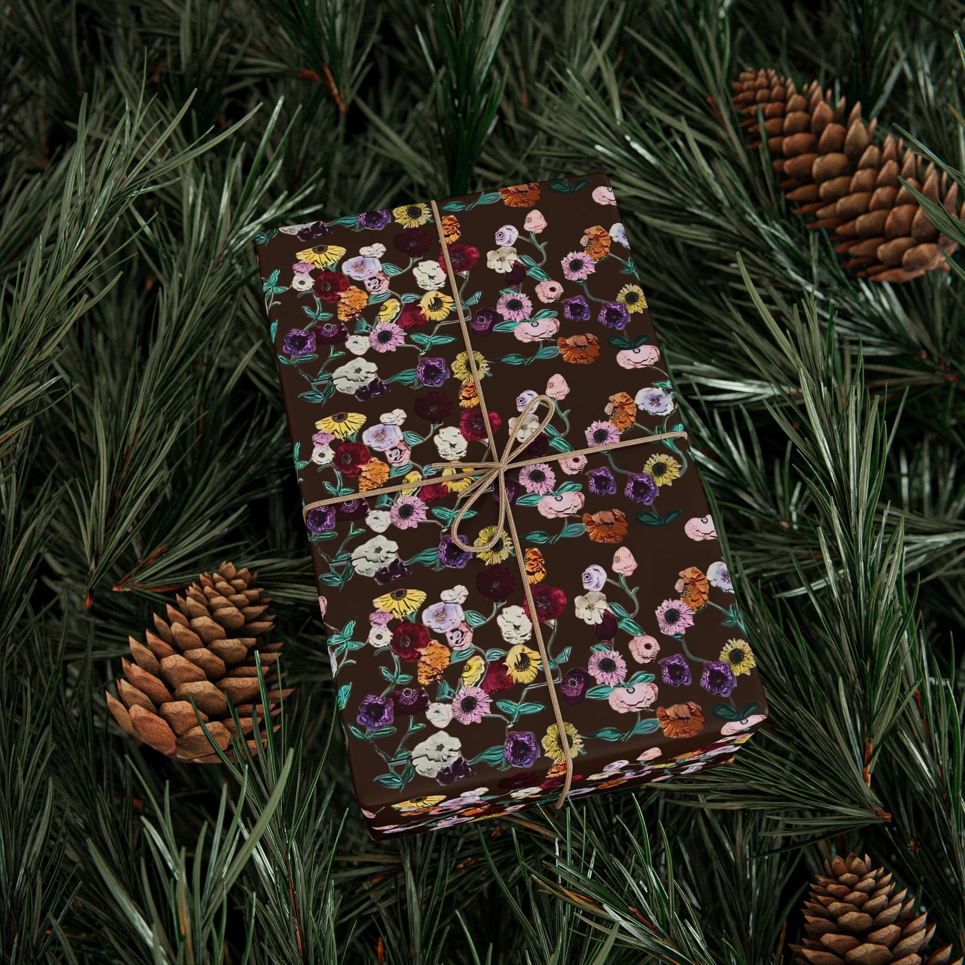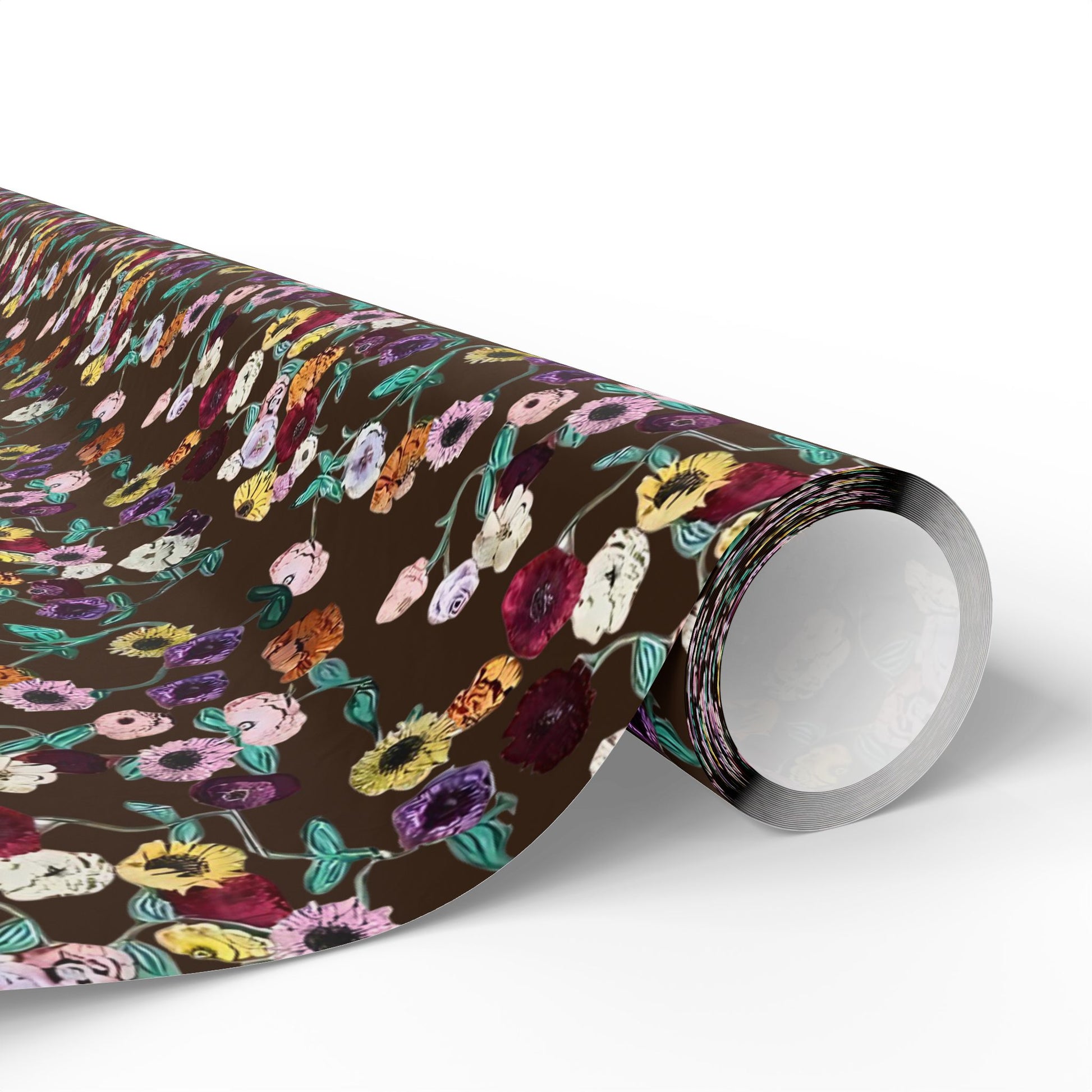This floral wrapping paper brings a warm, handcrafted mood to every gift. Rich, painterly blossoms float across a deep, chocolate background, their lively colors and loose brushstrokes giving each package an art-studio feel. The paper lies smooth and prints crisply in high-definition, so bouquets of color keep their texture and depth no matter the size you choose. Use the long sheets to wrap bottles, tall boxes, or create bold bands around plain kraft parcels—each wrap turns the unwrapping into a small, layered moment of joy and discovery.
