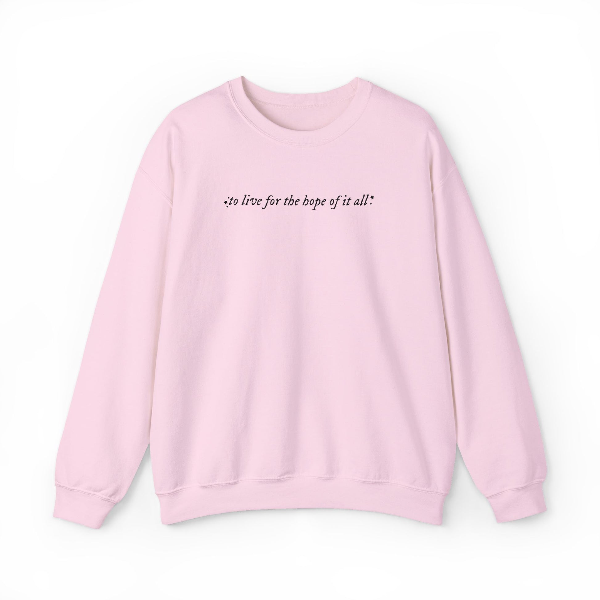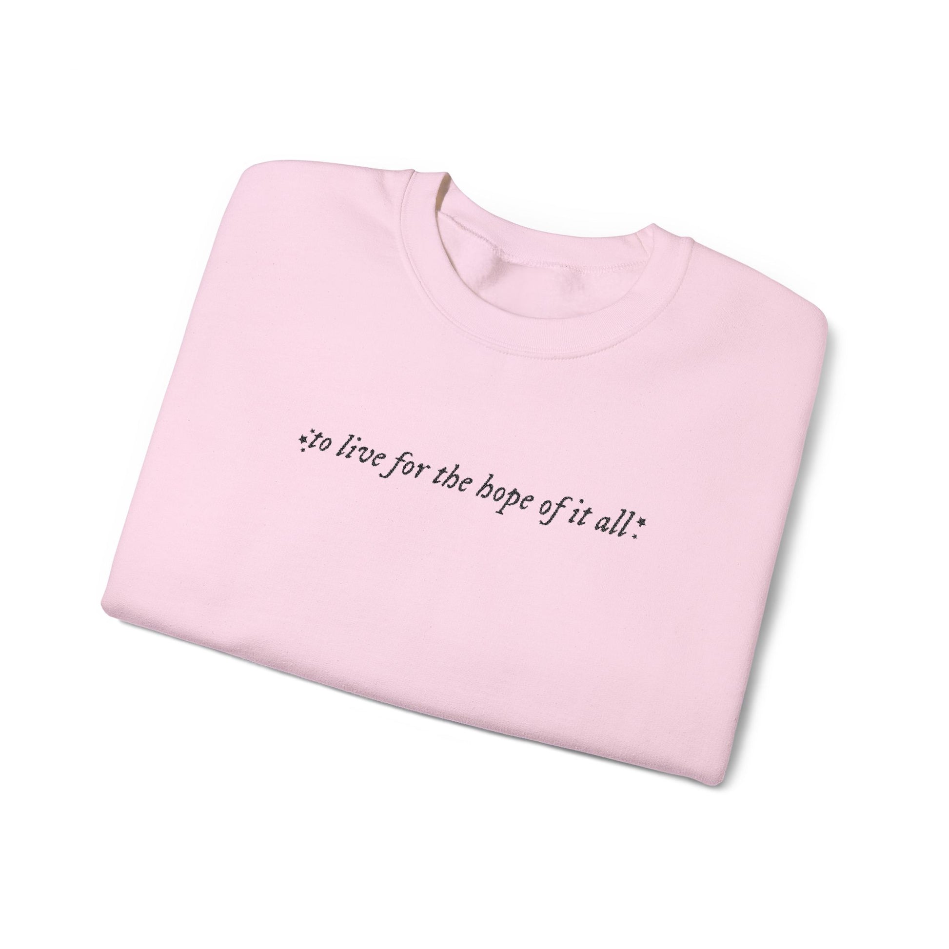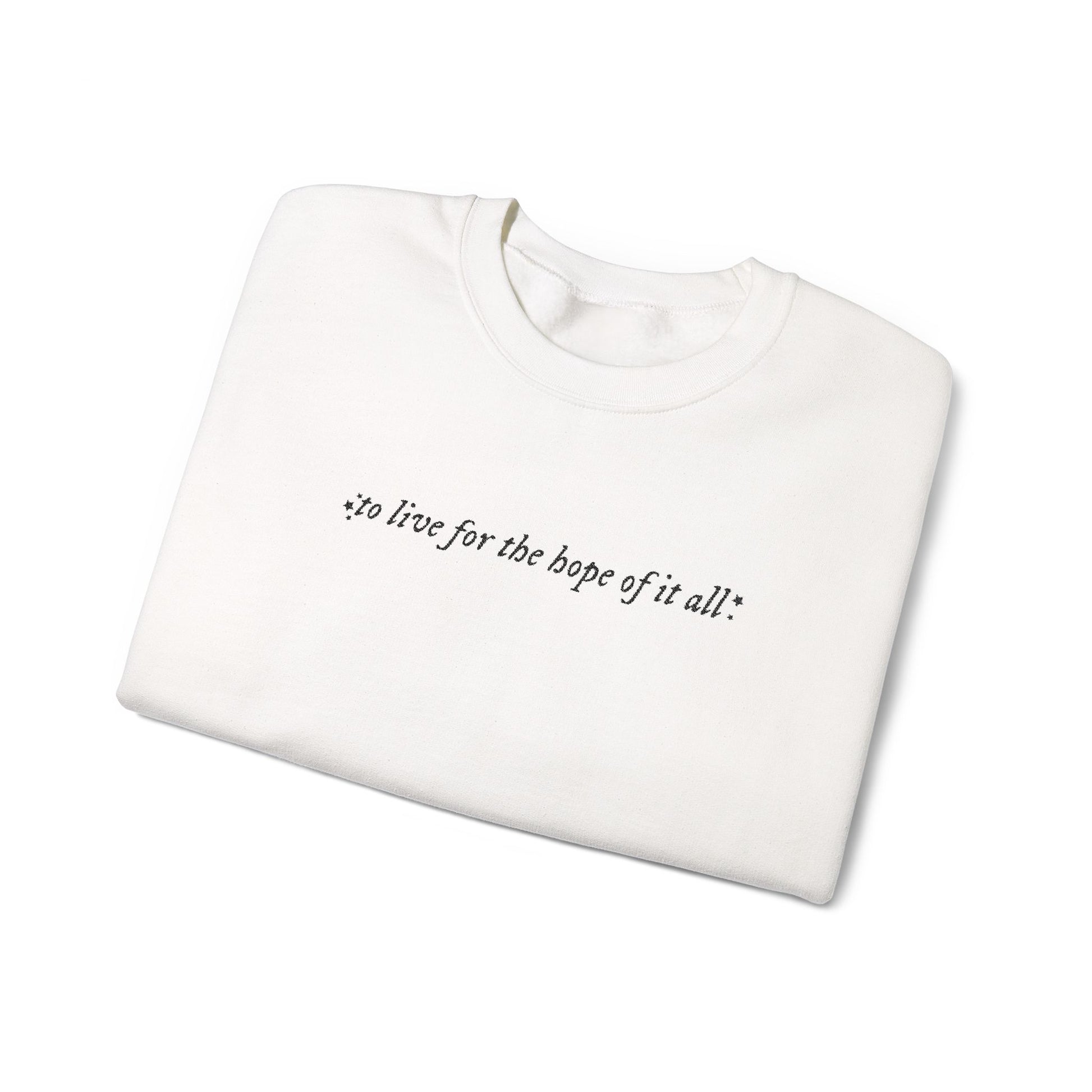 Embroidered Crewneck Sweatshirt — “for the hope of it all.” Minimal Script Pullover
