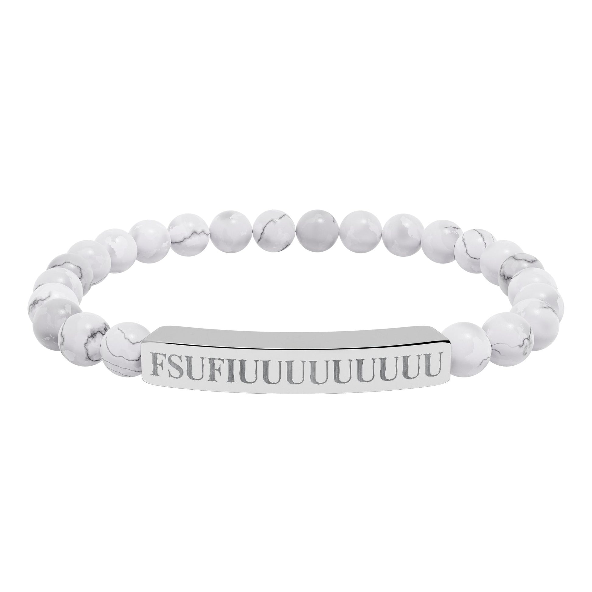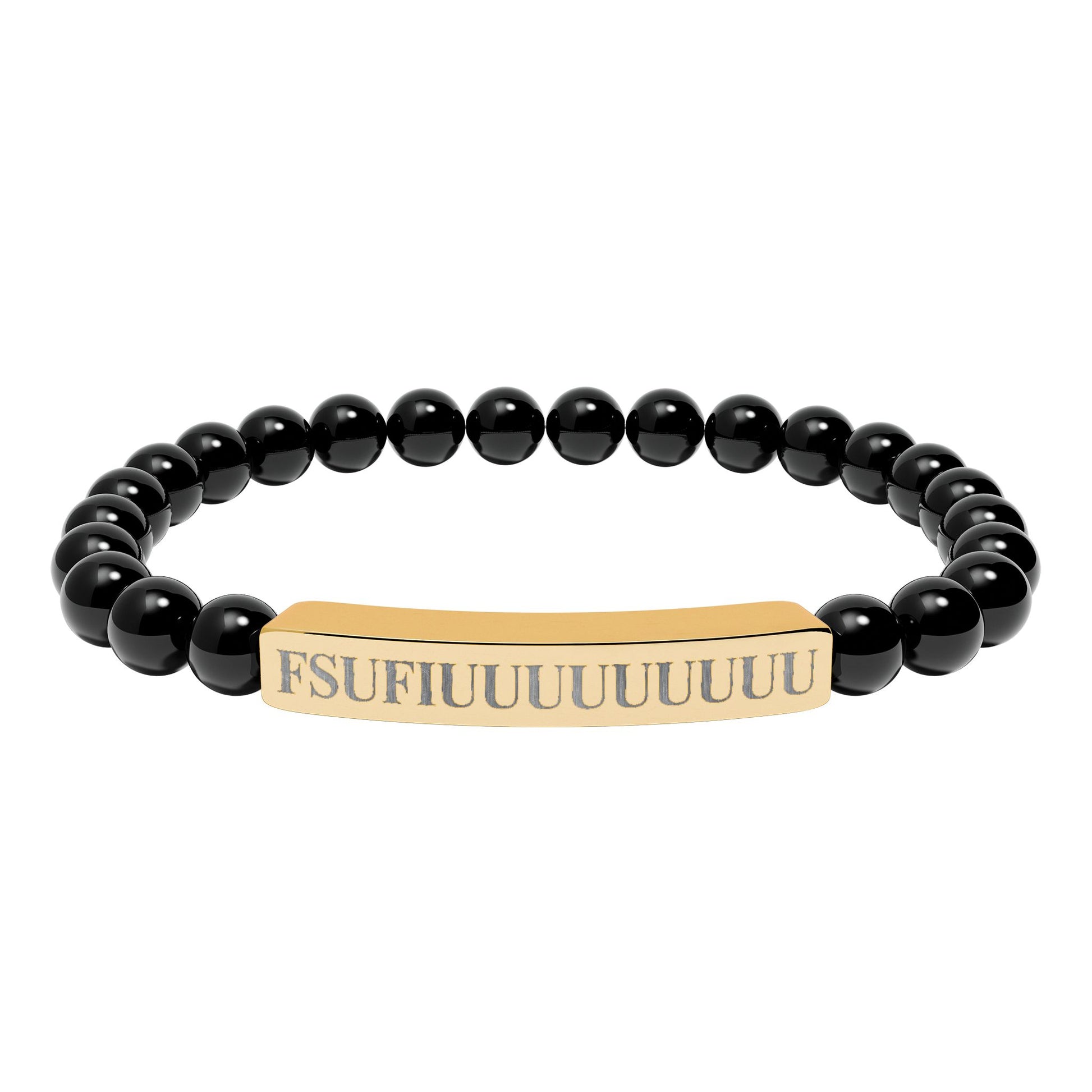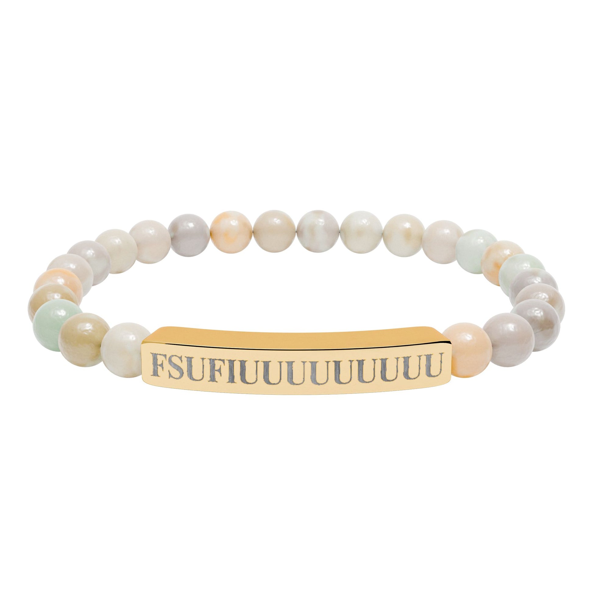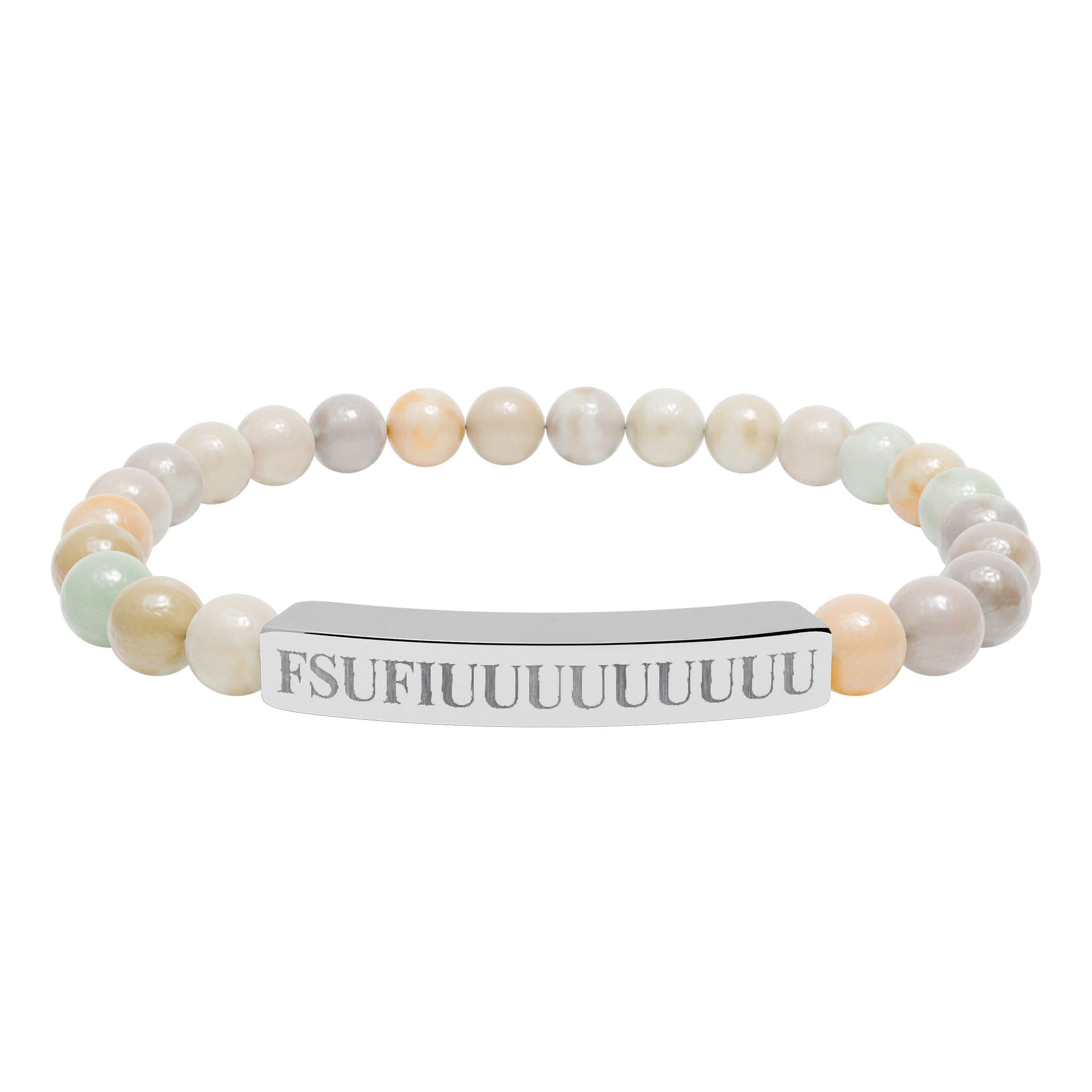 Engraved Natural Stone Stretch Bracelet —FSUFIUUUUUUUUU