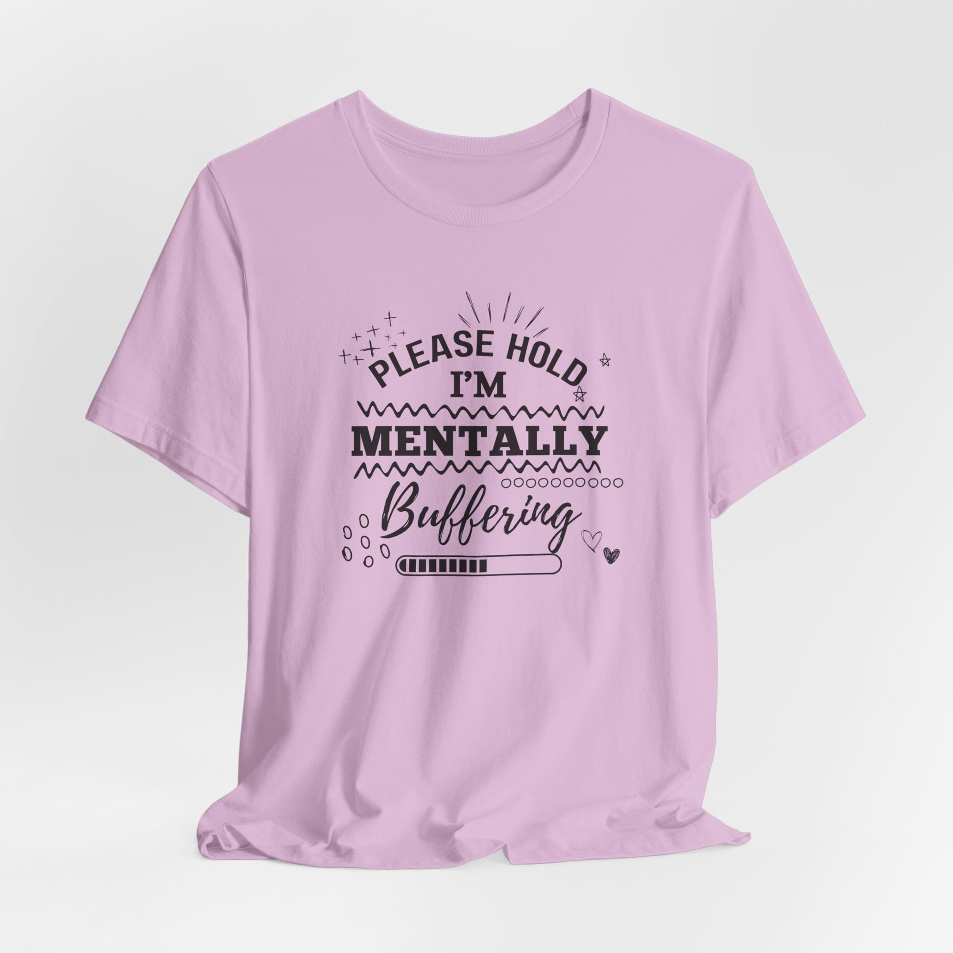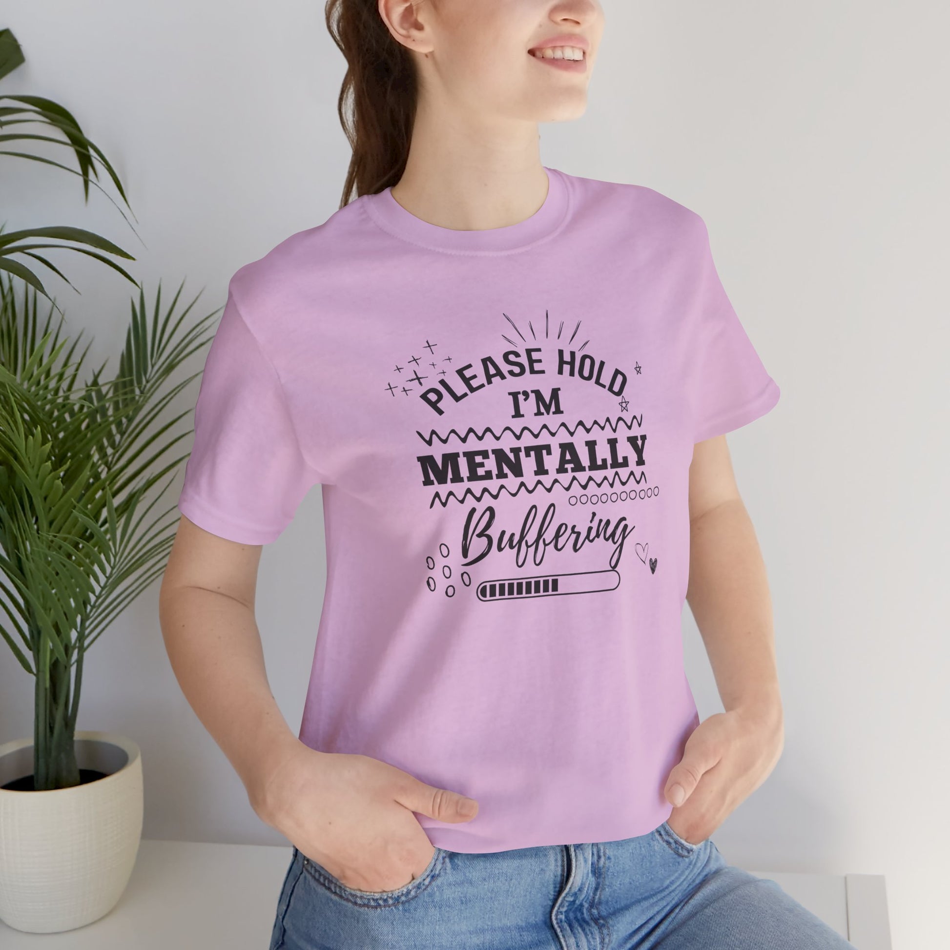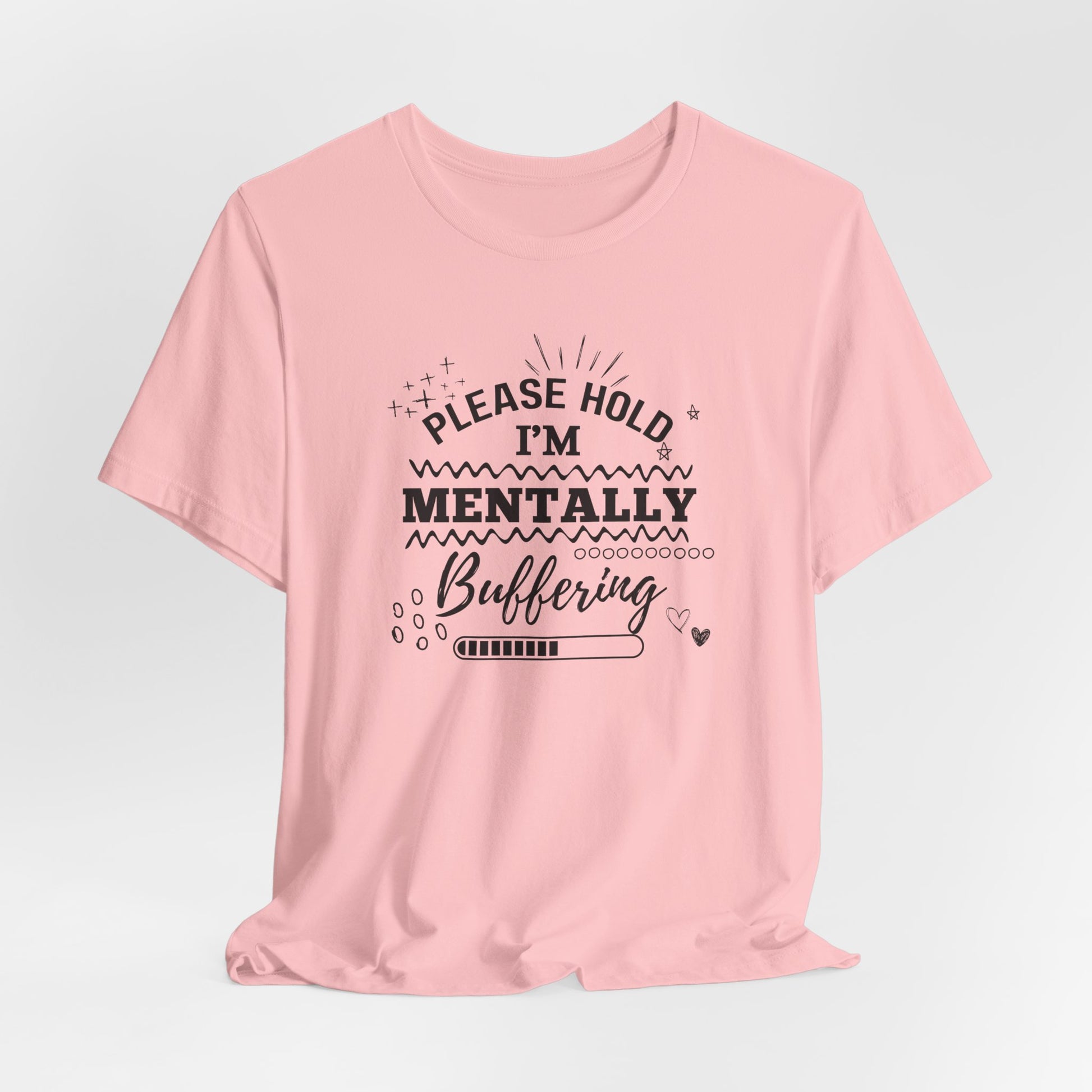 Funny Mental Health Unisex Tee, Please Hold I'm Mentally Buffering Shirt, Casual Gift for Friends, Humor T-Shirt for Stress Relief, [...]