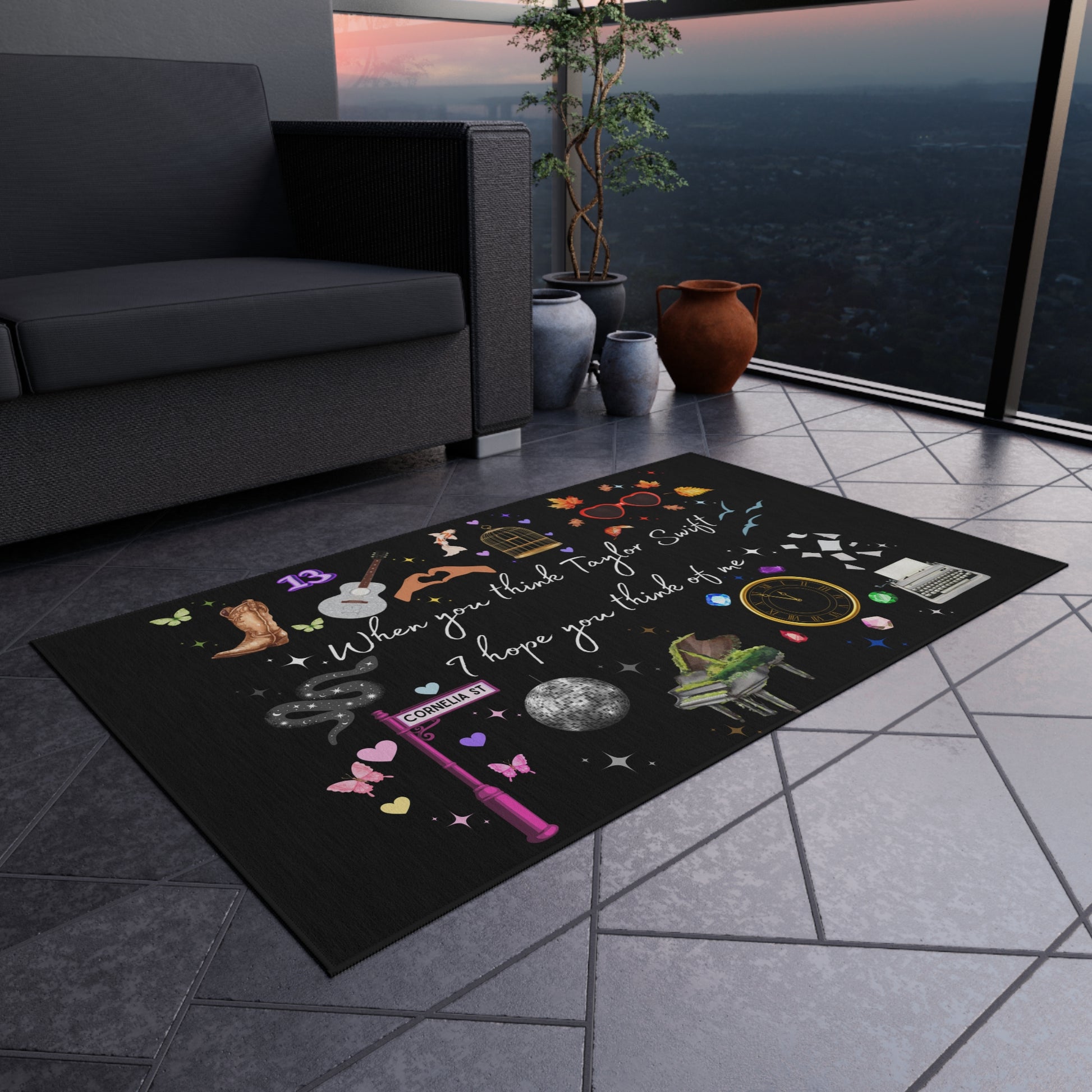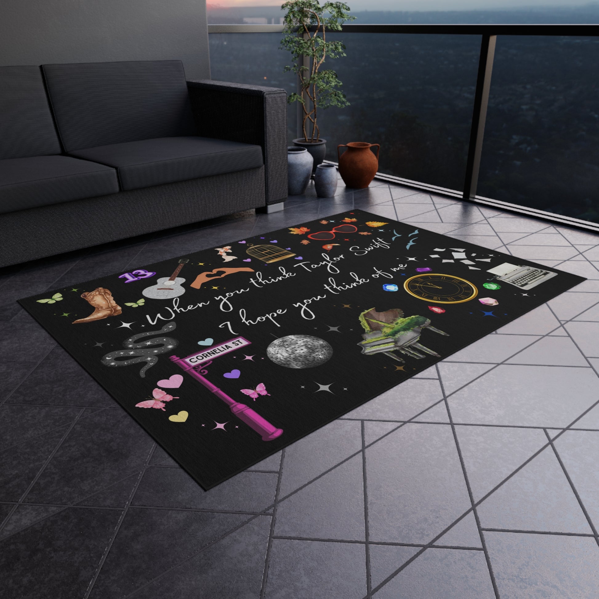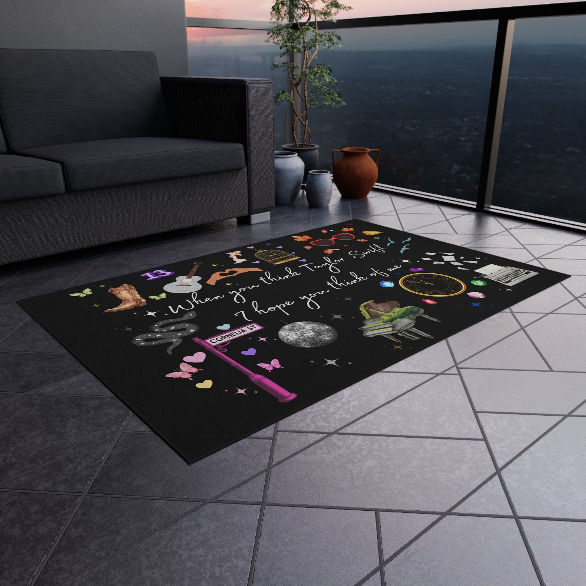 I hope you think of me - Outdoor Rug, Music Decor, Outdoor Living, Patio Accessory, Gift for Fan, Boho Home