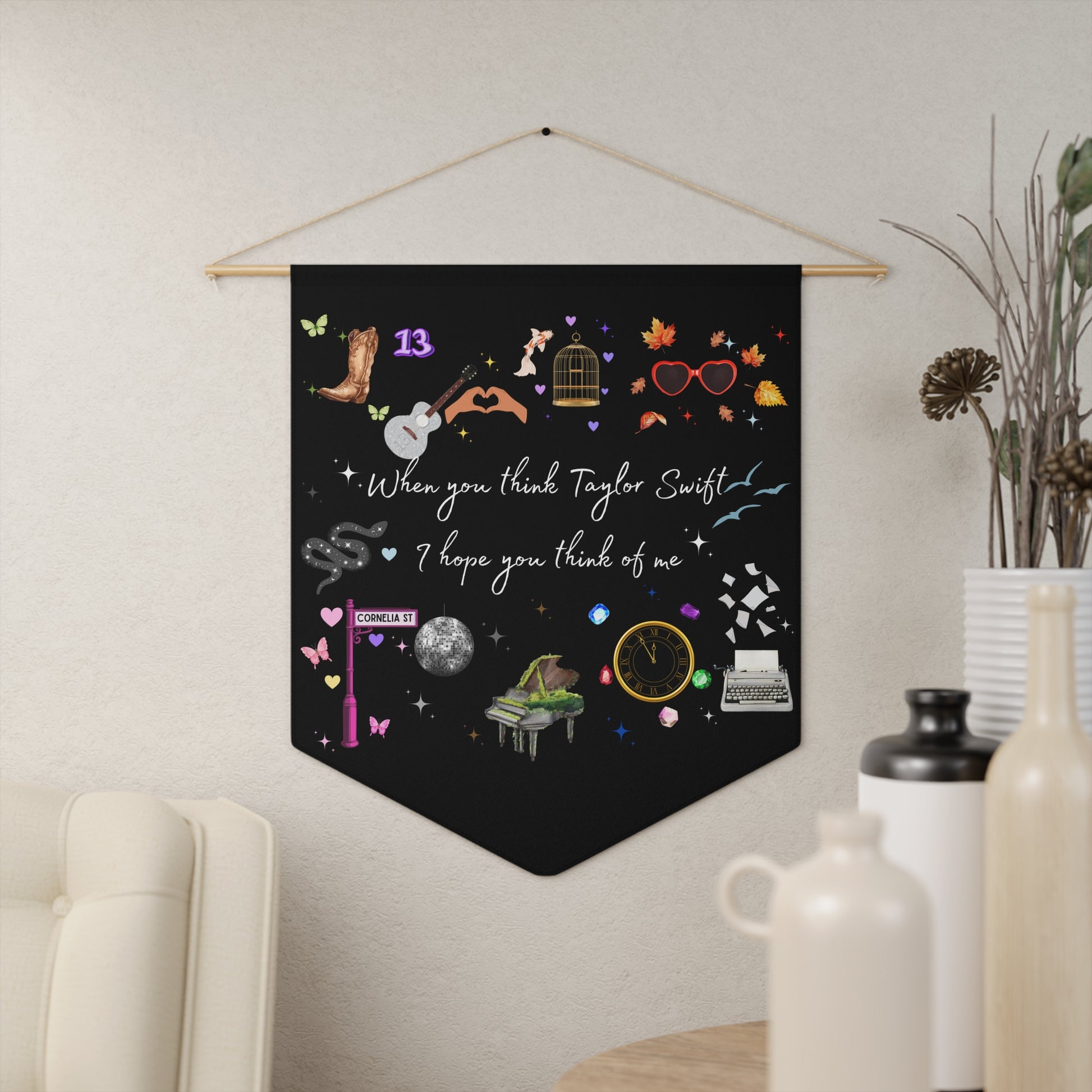 Introducing a stunning pennant that captures the essence of creativity and nostalgia. This vibrant piece is designed to bring warmth and personality to any space. Made from 100% durable polyester twill, it retains its shape while showcasing bright, crisp colors. Perfect for displaying in bedrooms, offices, or living rooms, this pennant invites admiration and inspires conversations. Ideal for fans of music and art, it makes a thoughtful gift for birthdays, celebrations, and holidays such as graduations or homecomings. Hang it with ease using the included wooden dowel and twine frame, making it a versatile decor item for any occasion.