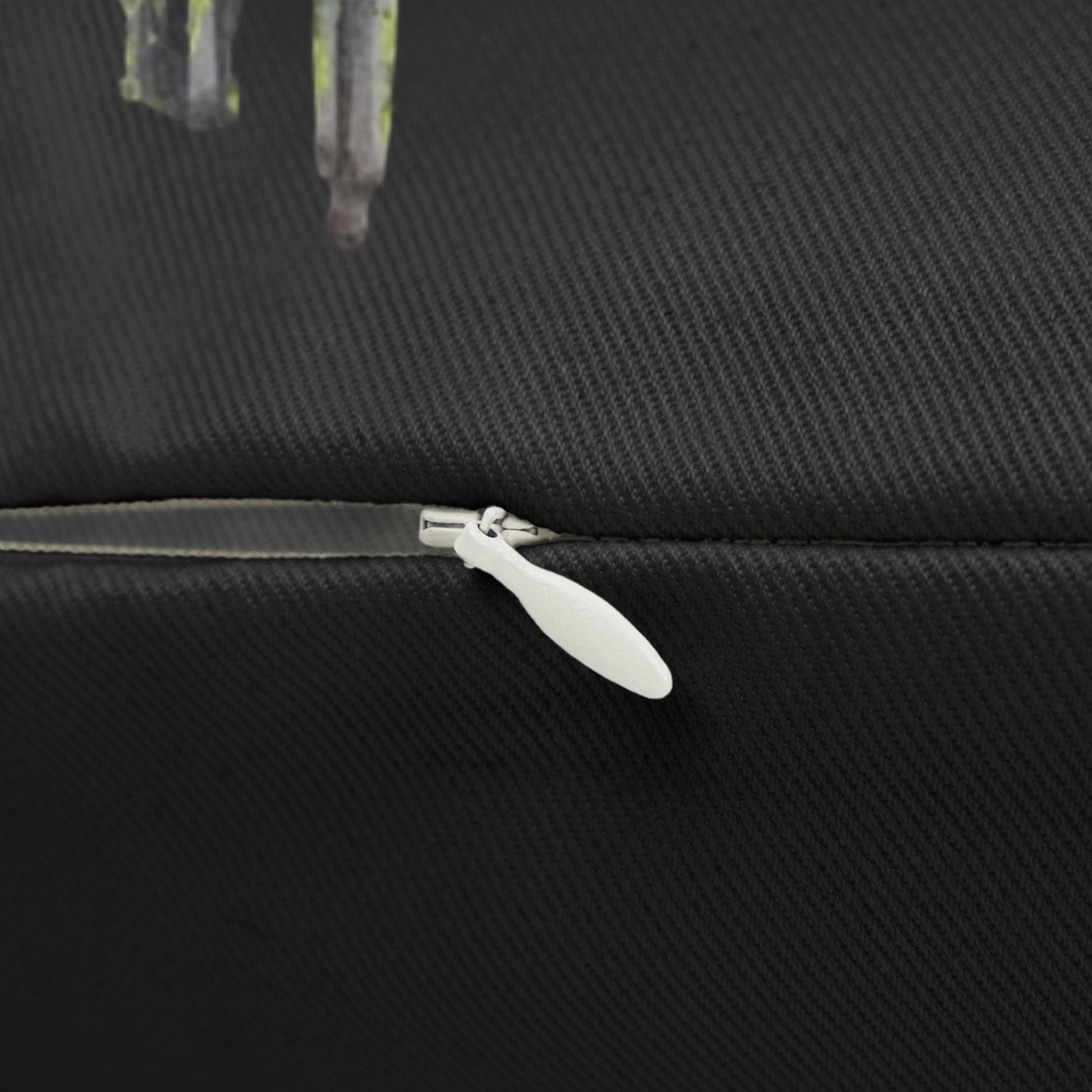 - Beige plastic zipper complements the design