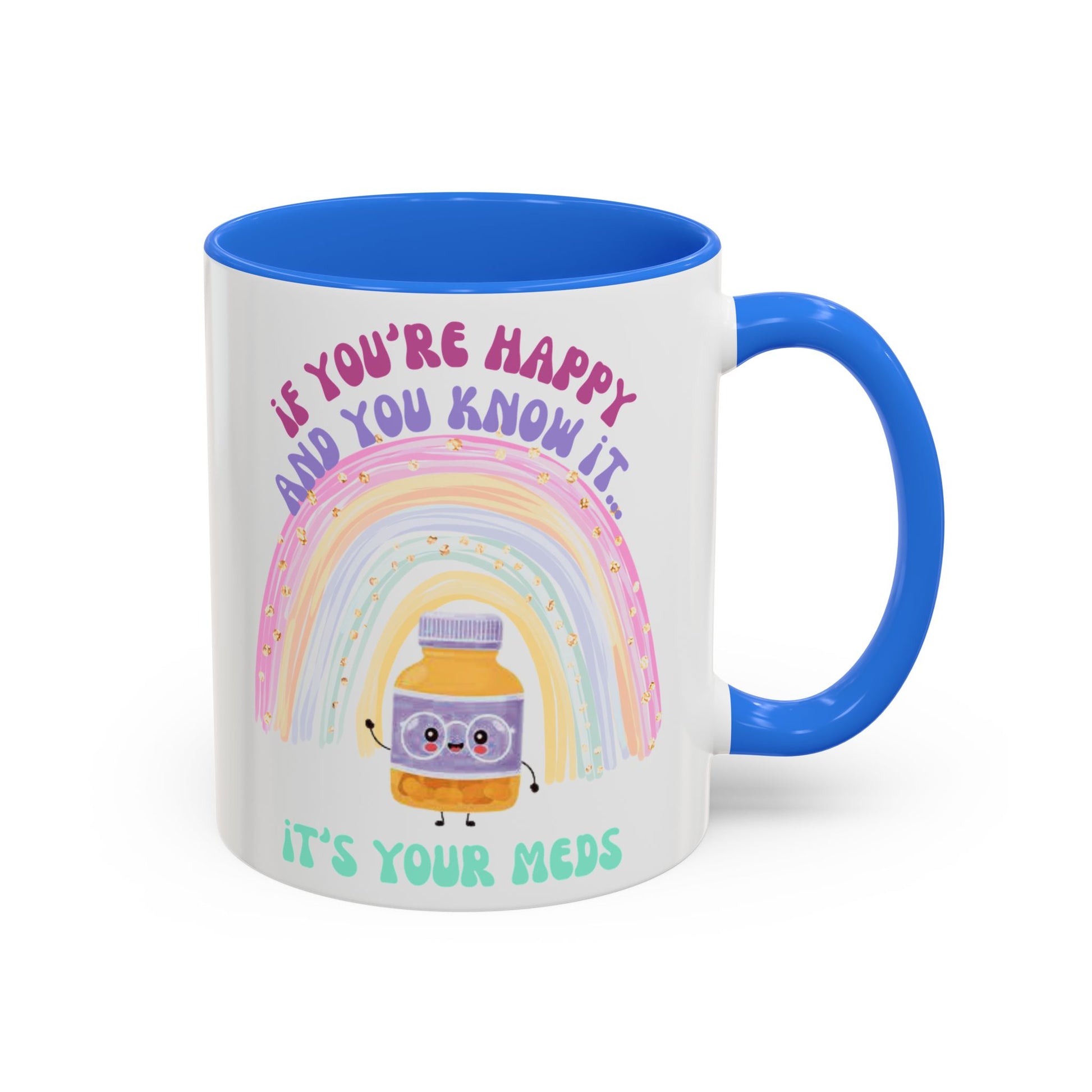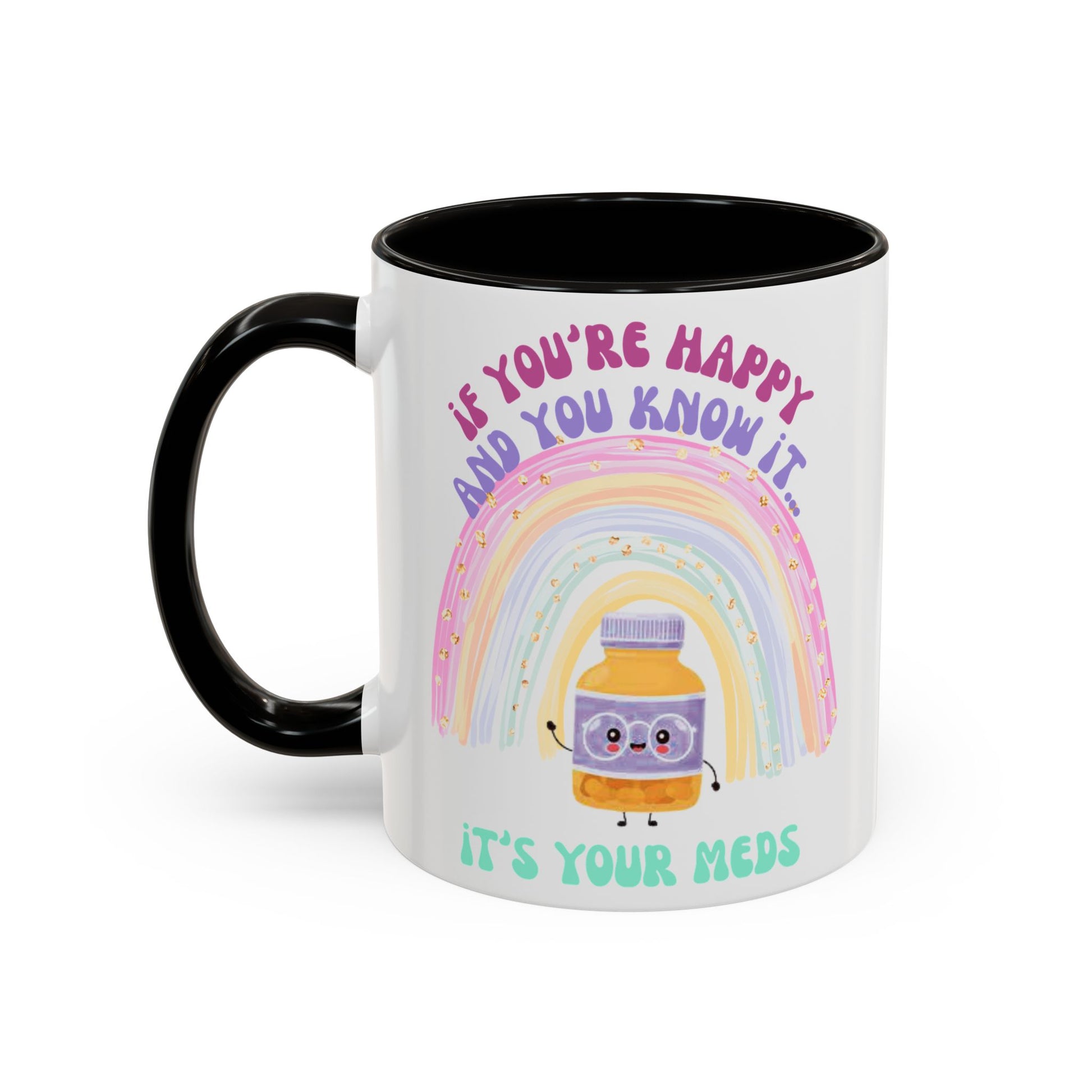 if you're happy and you know it, it's your meds - Colorful Motivational Mugs - Cheerful Drinkware for Every Occasion, Positive Affirmation, Gift for Friends, Colorful Rainbow Design, [...]