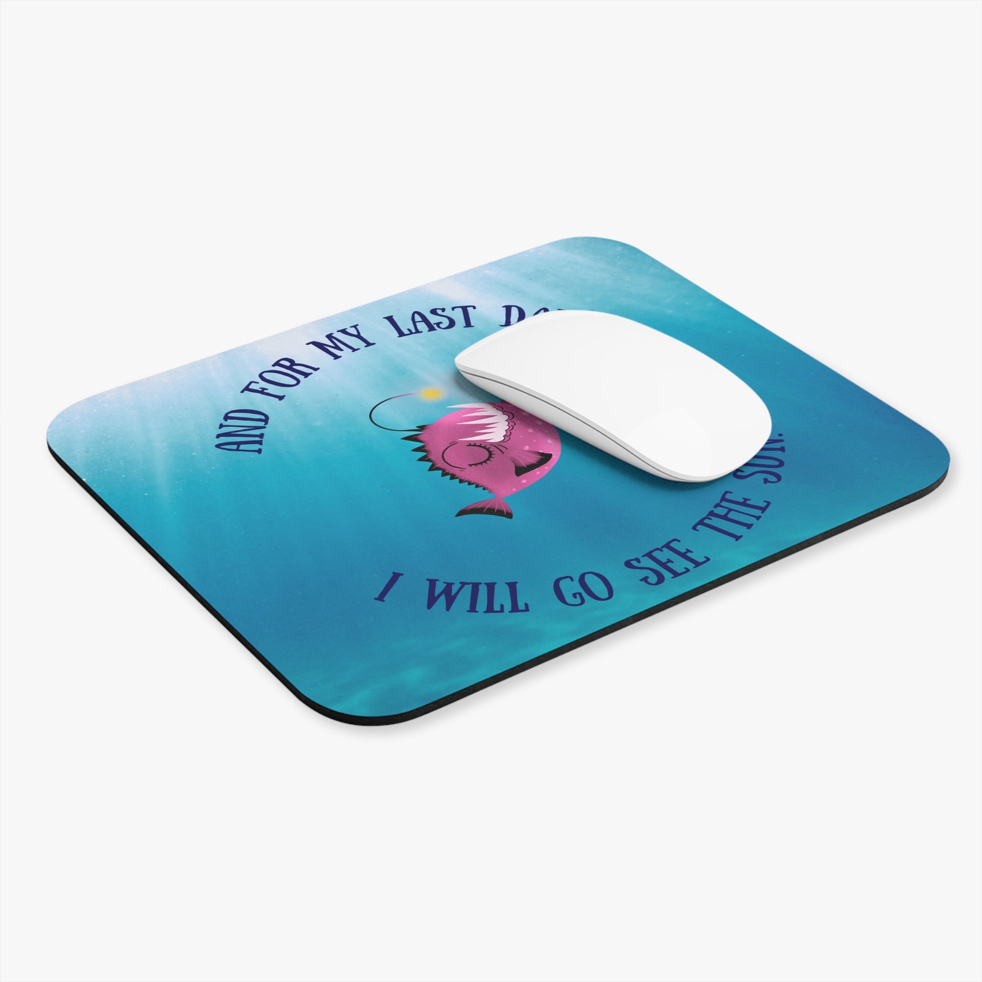 Inspirational Angler Fish Mouse Pad - "And For My Last Day... I Will Go See The Sun"