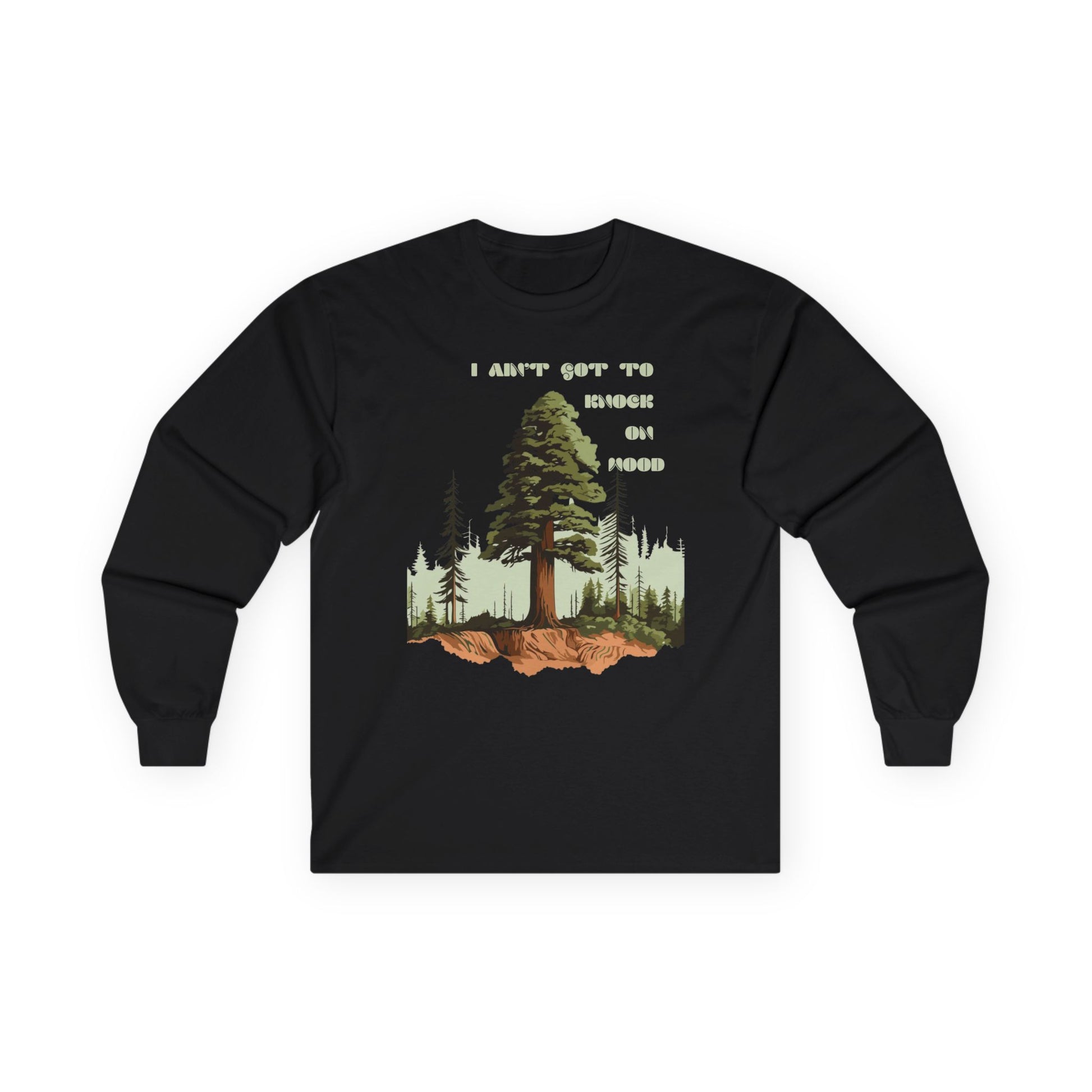 Knock on Wood Long Sleeve Tee, Unisex Cotton Shirt, Outdoor Adventure Top, Gift for Nature Enthusiasts, Comfortable Fall Apparel