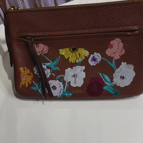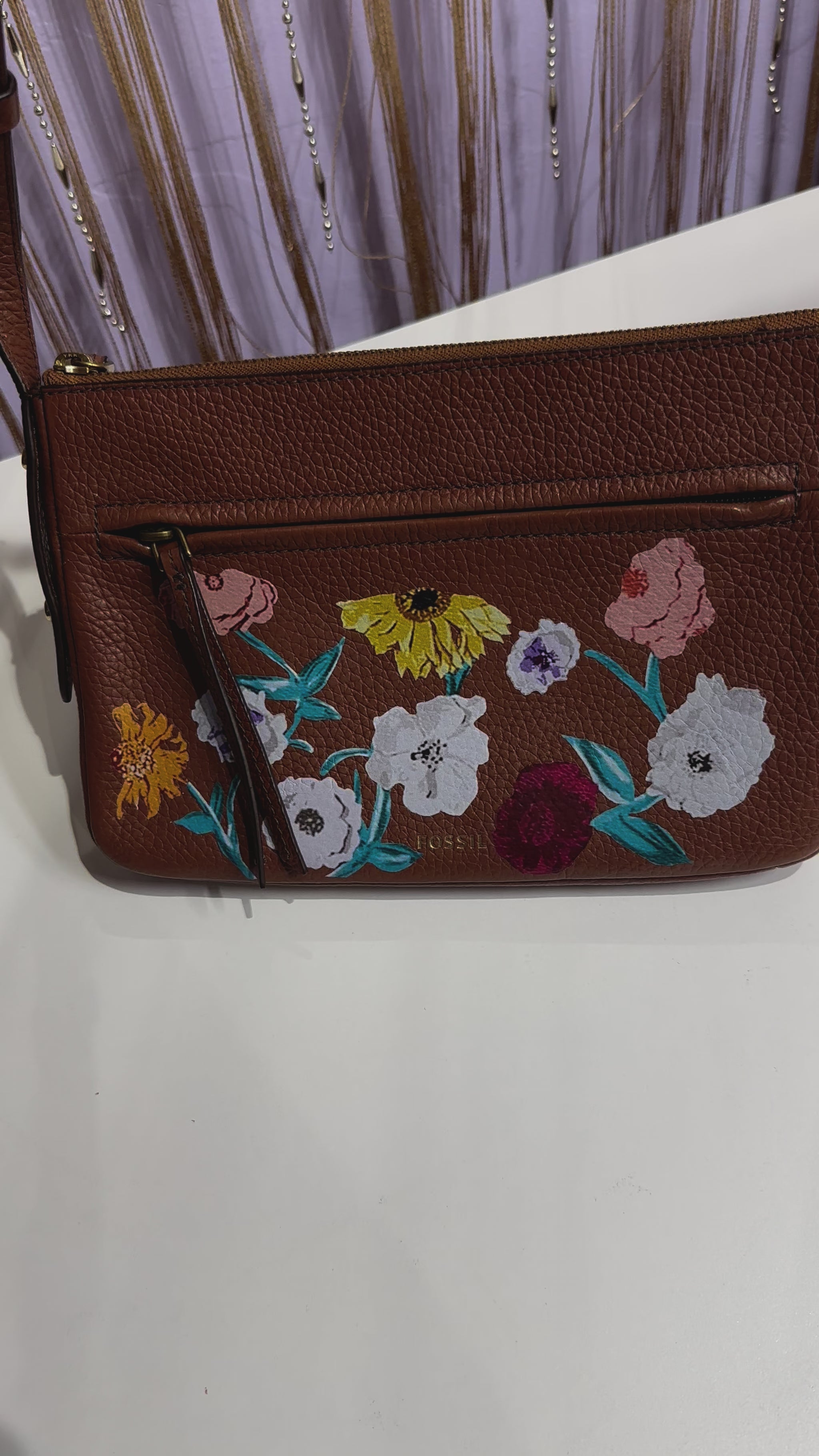 One of a kind New without tags genuine leather Fossil Crossbody bag, featuring the iconic flowers from Taylor Swift's Eras piano. Includes an adjustable crossbody strap for the perfect fit!