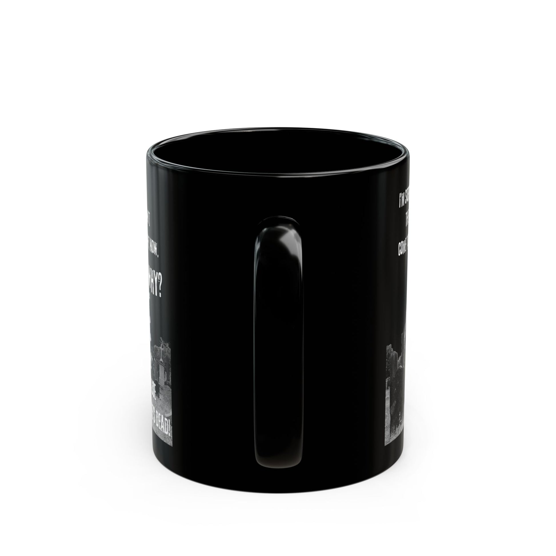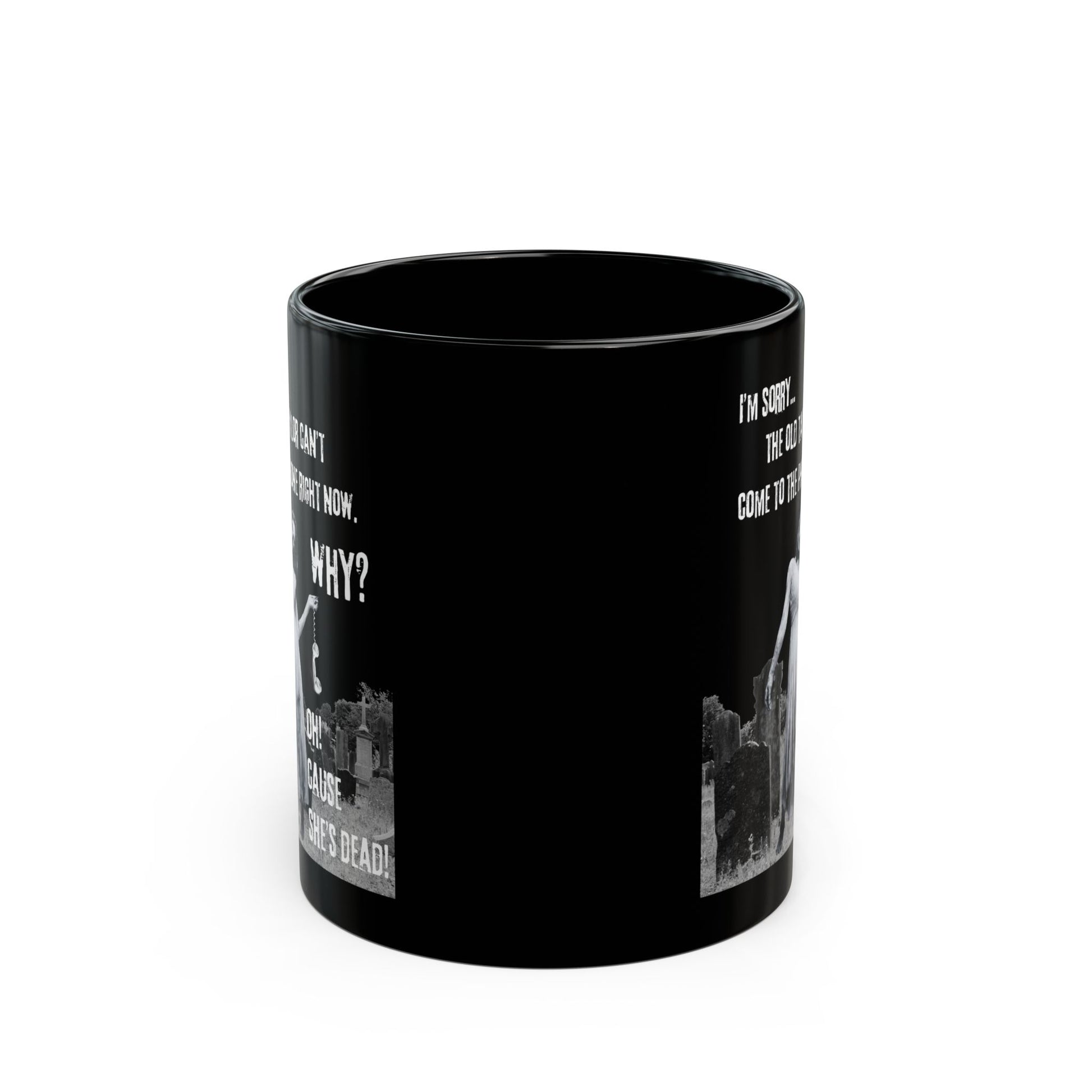 Oh, cause she's dead! Gothic Black Mug for Fans of Dark Humor, Halloween Gift, Coffee Cup, Funny Quote, Spooky Tea Mug