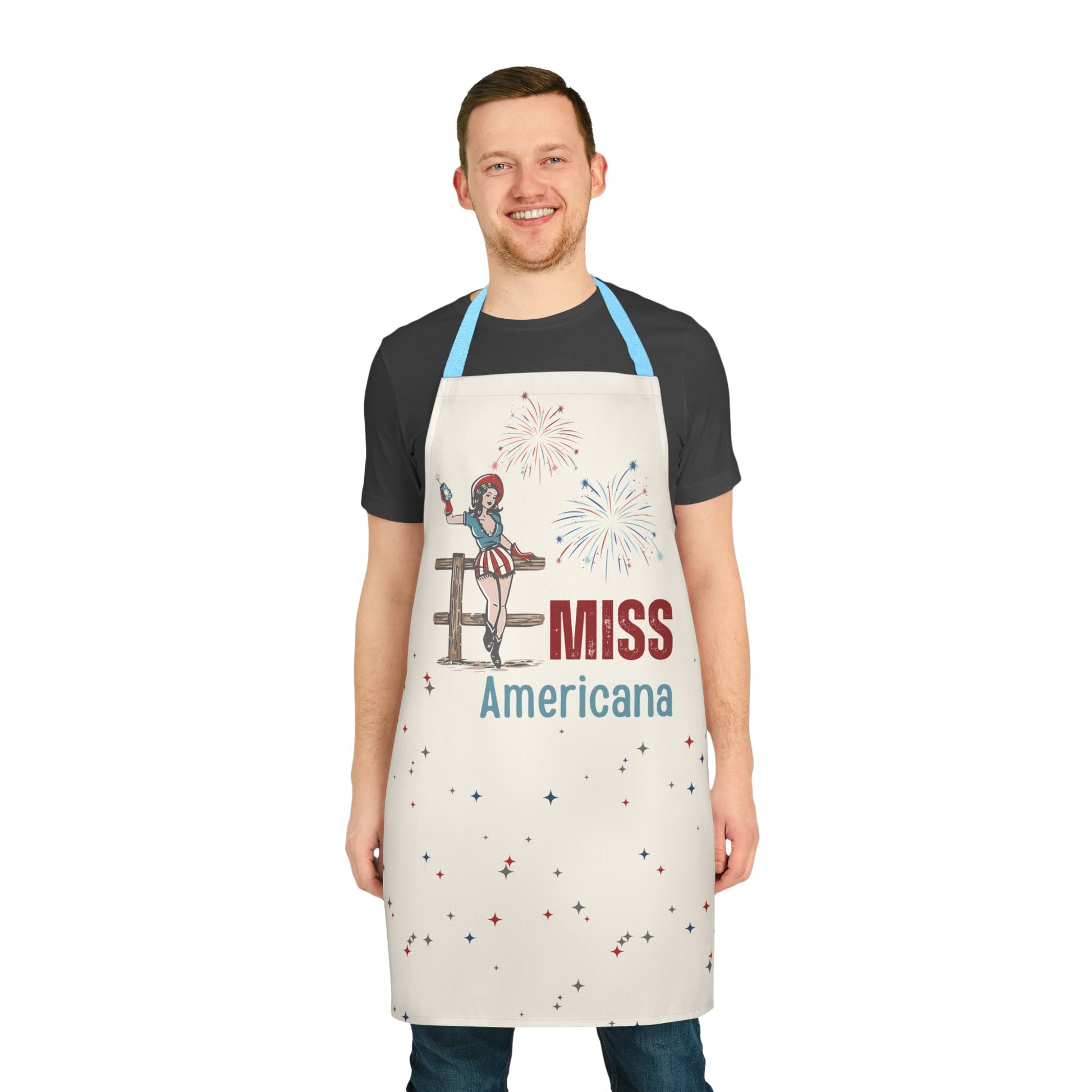 Patriotic Apron - Miss Americana, 4th of July Cooking Gift, Holiday BBQ Apron, Americana Kitchen Style, Baking, Grilling, Family Gatherings