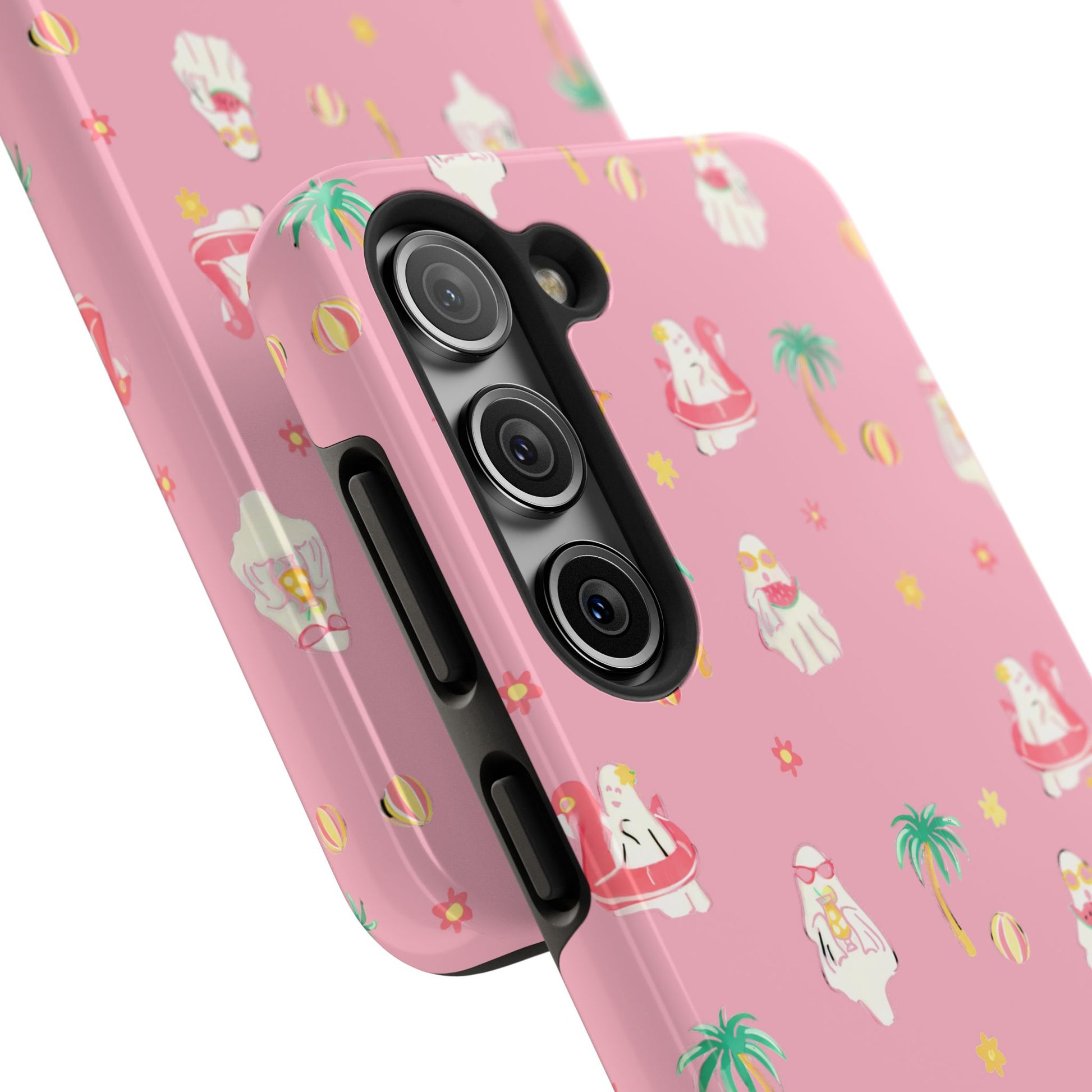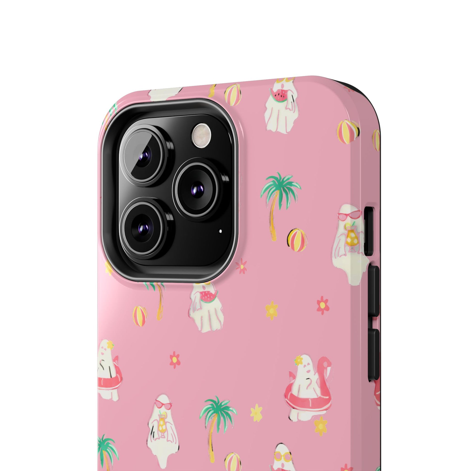 Pink Summerween Phone Cases with Ghosties - Fun Vacation Accessories, Cute Gift for Beach Lovers, Phone Covers, Summer Essentials