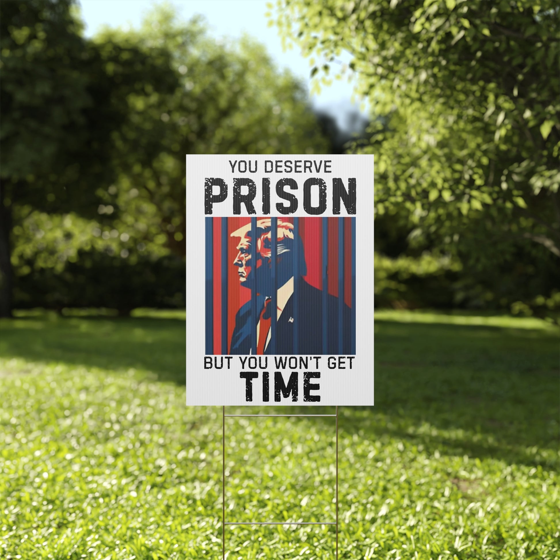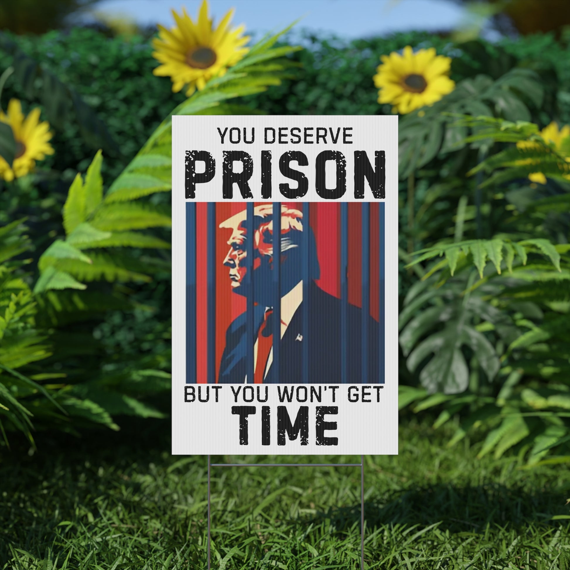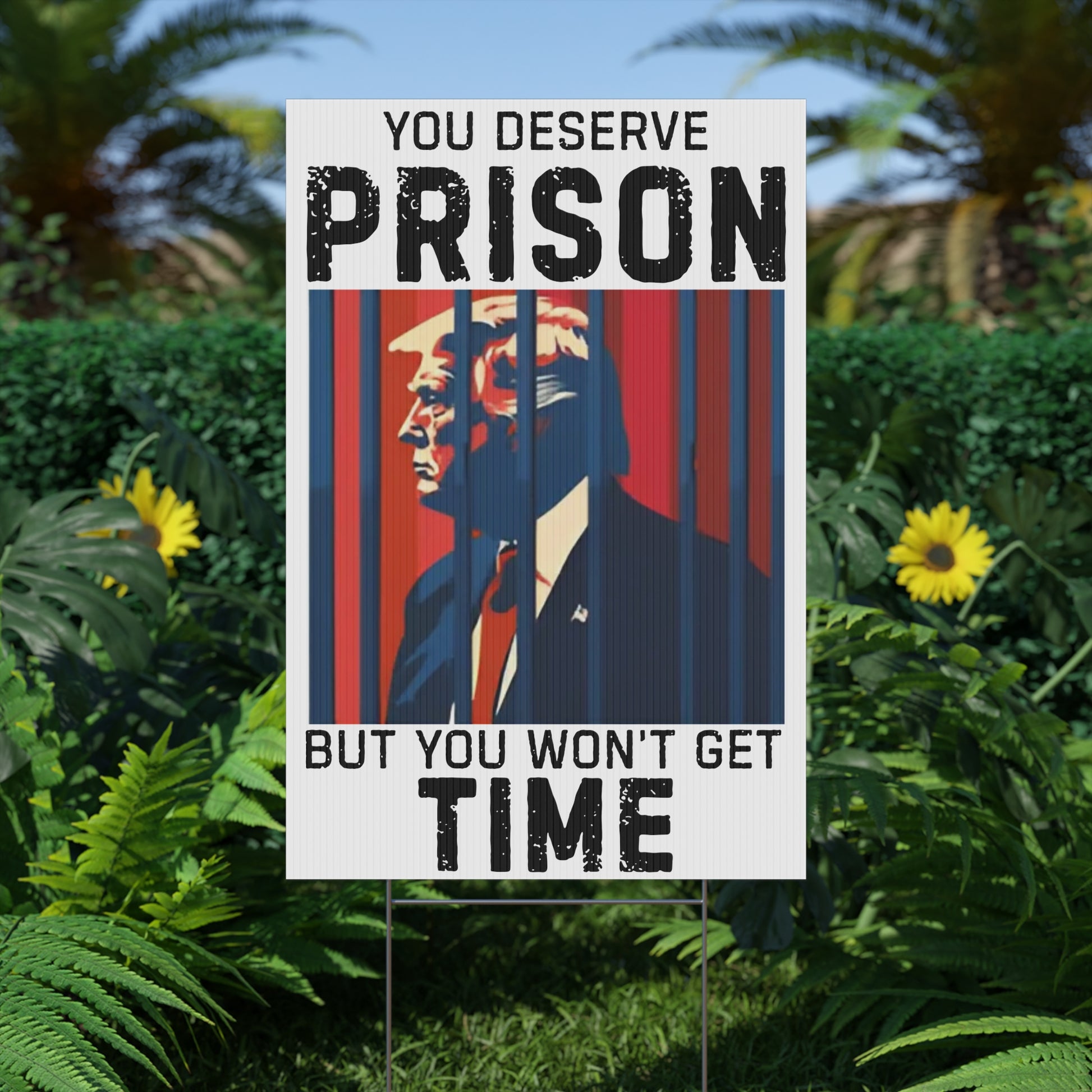 Political Yard Sign - "You Deserve Prison But You Won't Get Time", Home Decor, Garden Decor, Protest Sign, Election Campaign