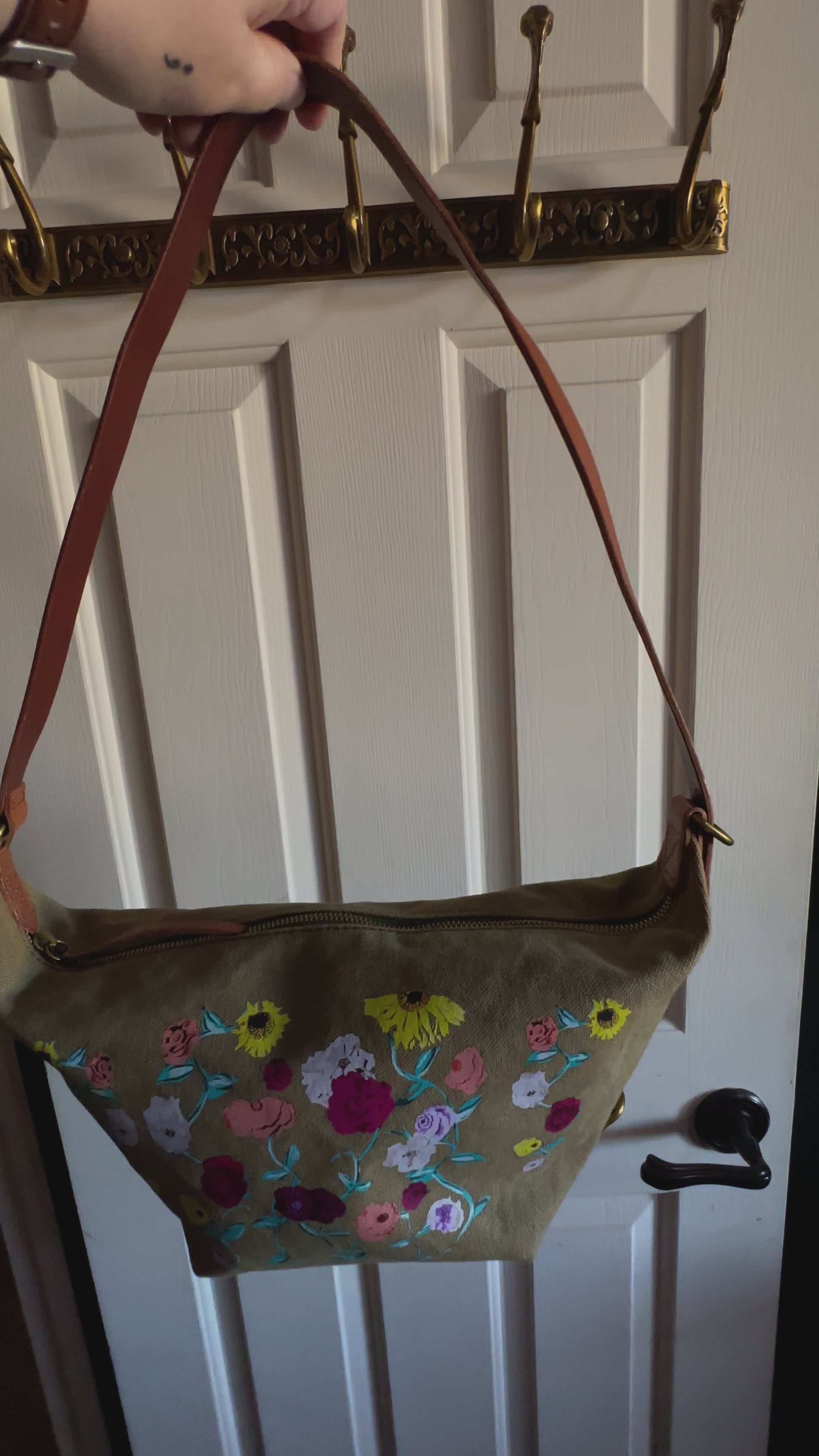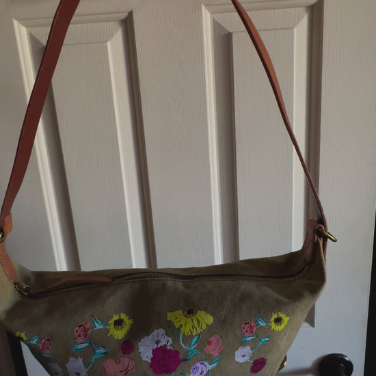 This is "The Canvas Sling Bag" from Madewell by J Crew, and has been lovingly cleaned and reimagined with the iconic floral design from Taylor's Acoustic Set Piano from The Eras Tour! Flower design applied by hand. Looks like new!