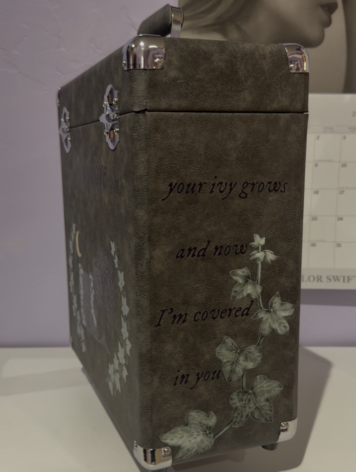 These gray hued vinyl storage cases feature designs and images representing both albums. They have been embellished with permanent heat transfer DTF, so they are made to last!
