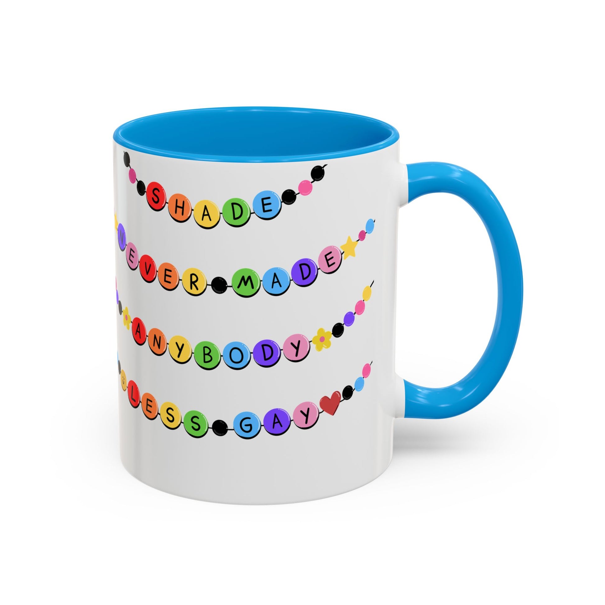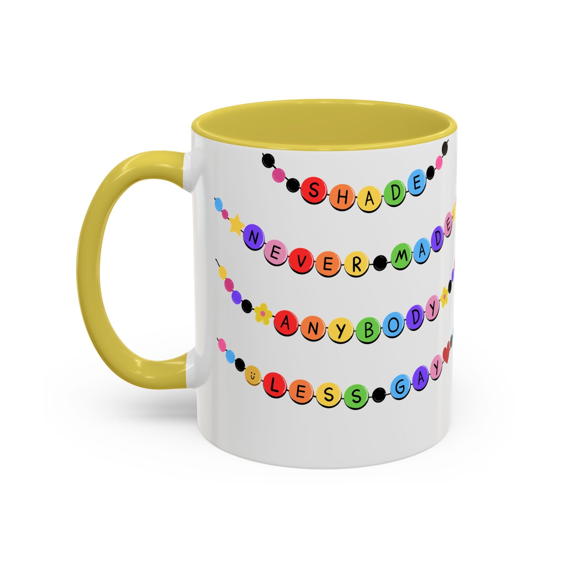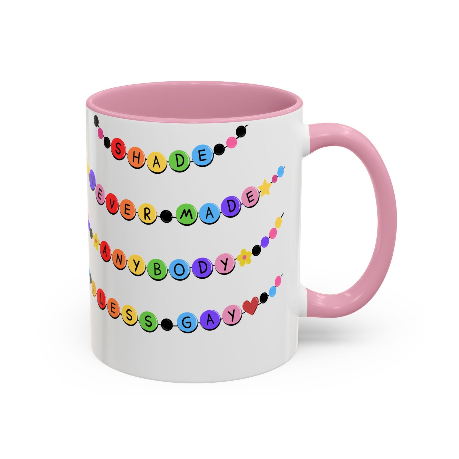 Shade Never Made Anybody Less Gay - Friendship Bracelet Pride Mugs - Fun & Whimsical Coffee Cups for Pride, Birthdays, & Everyday Use, Gifts for Friends, Family, LGBTQ+