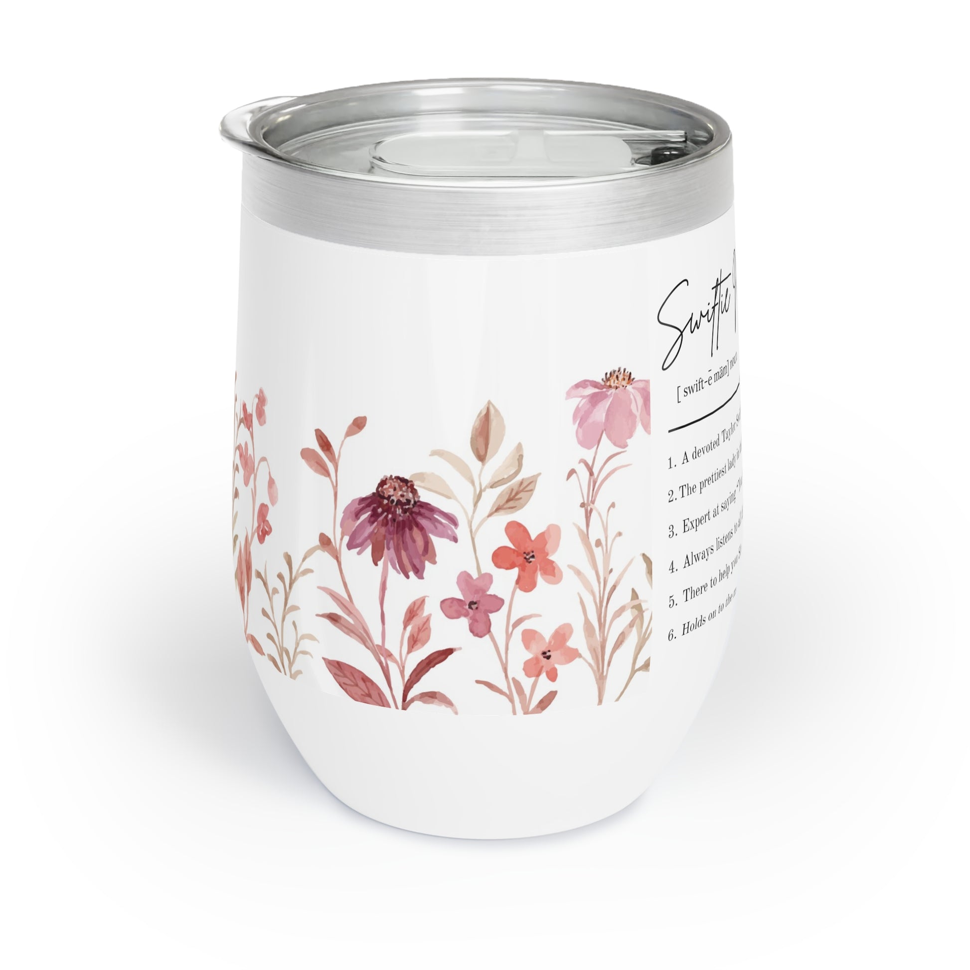They say wine is the secret to a long, happy life. This Swiftie Mom wine tumbler helps you or your Swiftie Mama enjoy wine (or other beverages) at the perfect temperature. Its double-insulated walls help retain your drinks soothingly hot or refreshingly cold, while the stainless steel, stemless design makes for incredible durability and ease of use. Decorated with my definition of a Swiftie Mom!