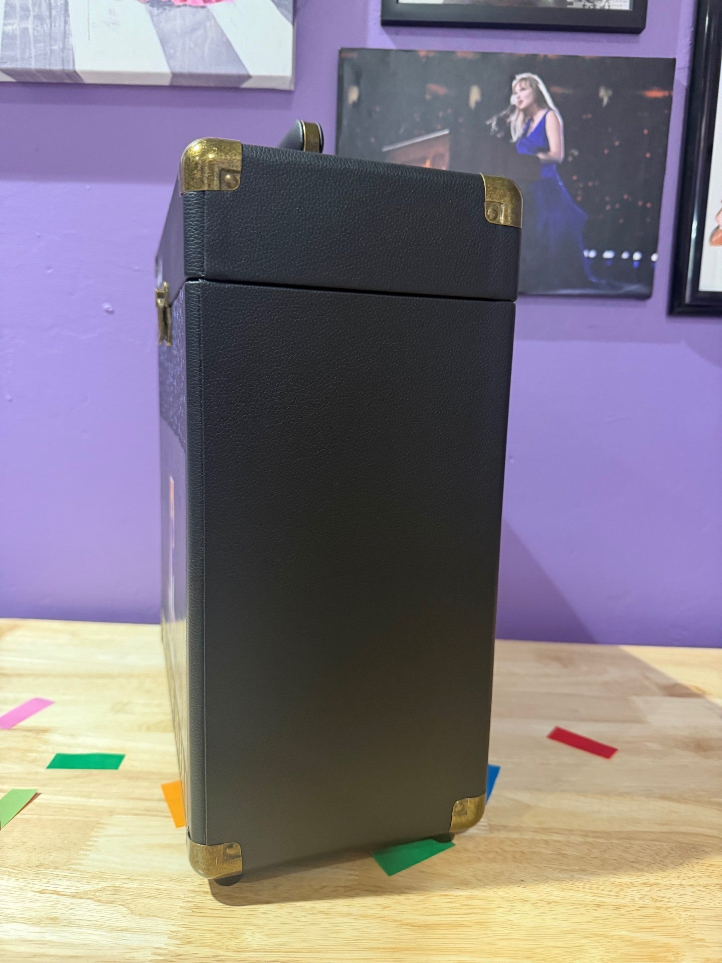 This Costravio storage box, with dimensions of 13.38 x 6.69 x 14.76 inches, exemplifies a design that unites functionality with protective capabilities, making it an invaluable addition for both vinyl collectors and aficionados.