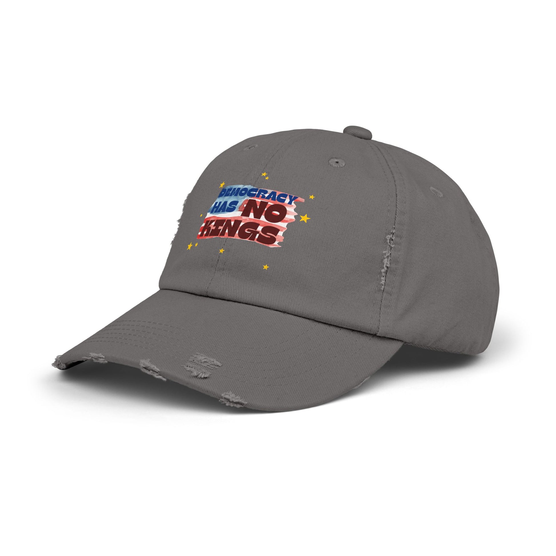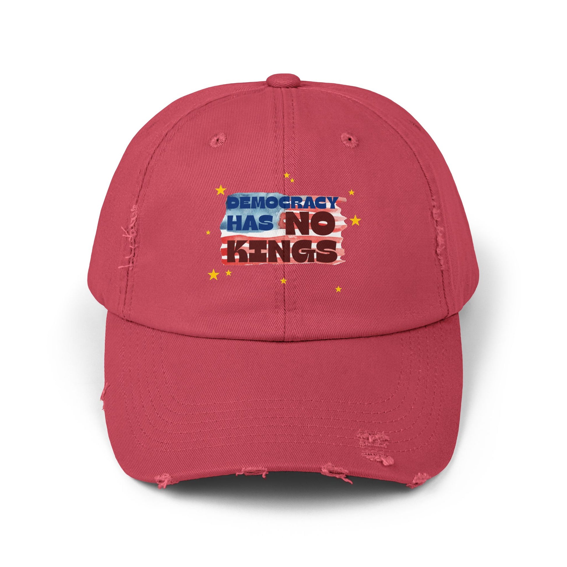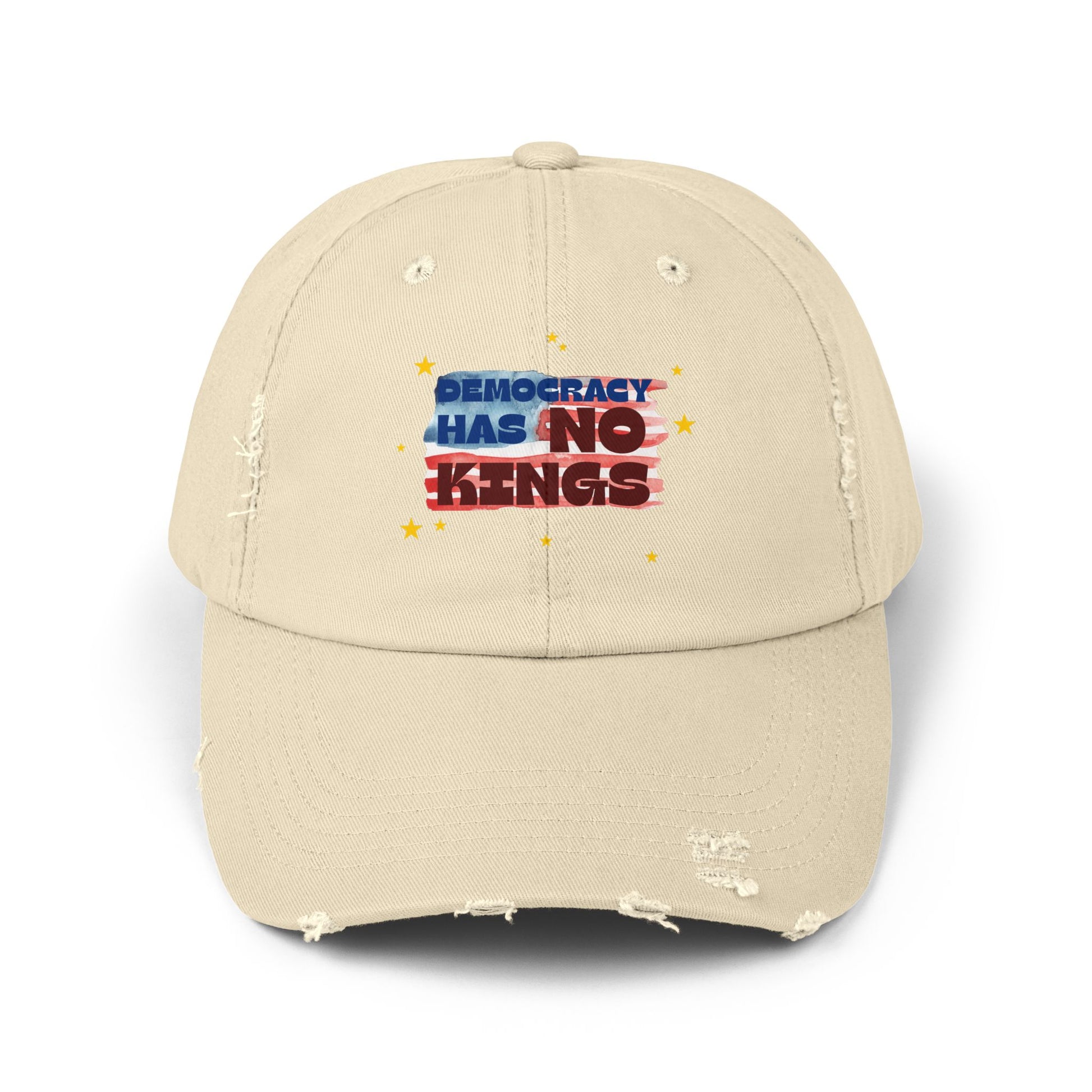 Unisex Distressed Cap with 'Democracy Has No Kings' Design | Casual Hat for Outdoor Events, Gifts for Activists, Trendy Accessories